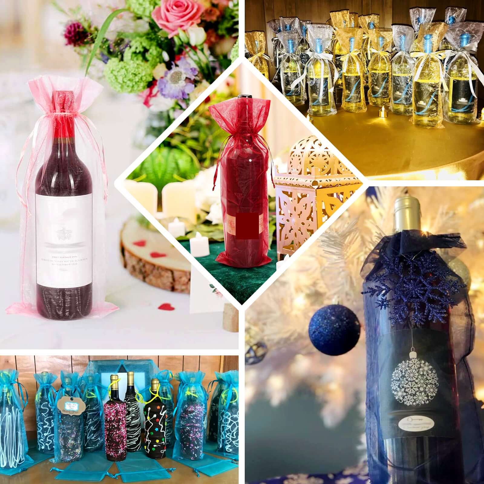 10 Pack 6"x15" Black Organza Drawstring Party Favor Wine Gift Bags