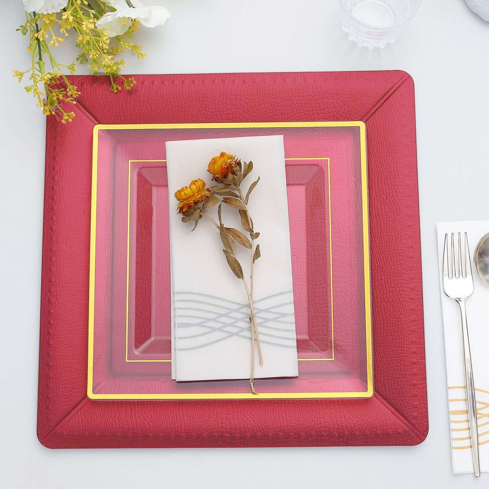 10-Pack Disposable Square Charger Plates in Burgundy with Leather Like Texture - 1100GSM Durable Paper Chargers 13"