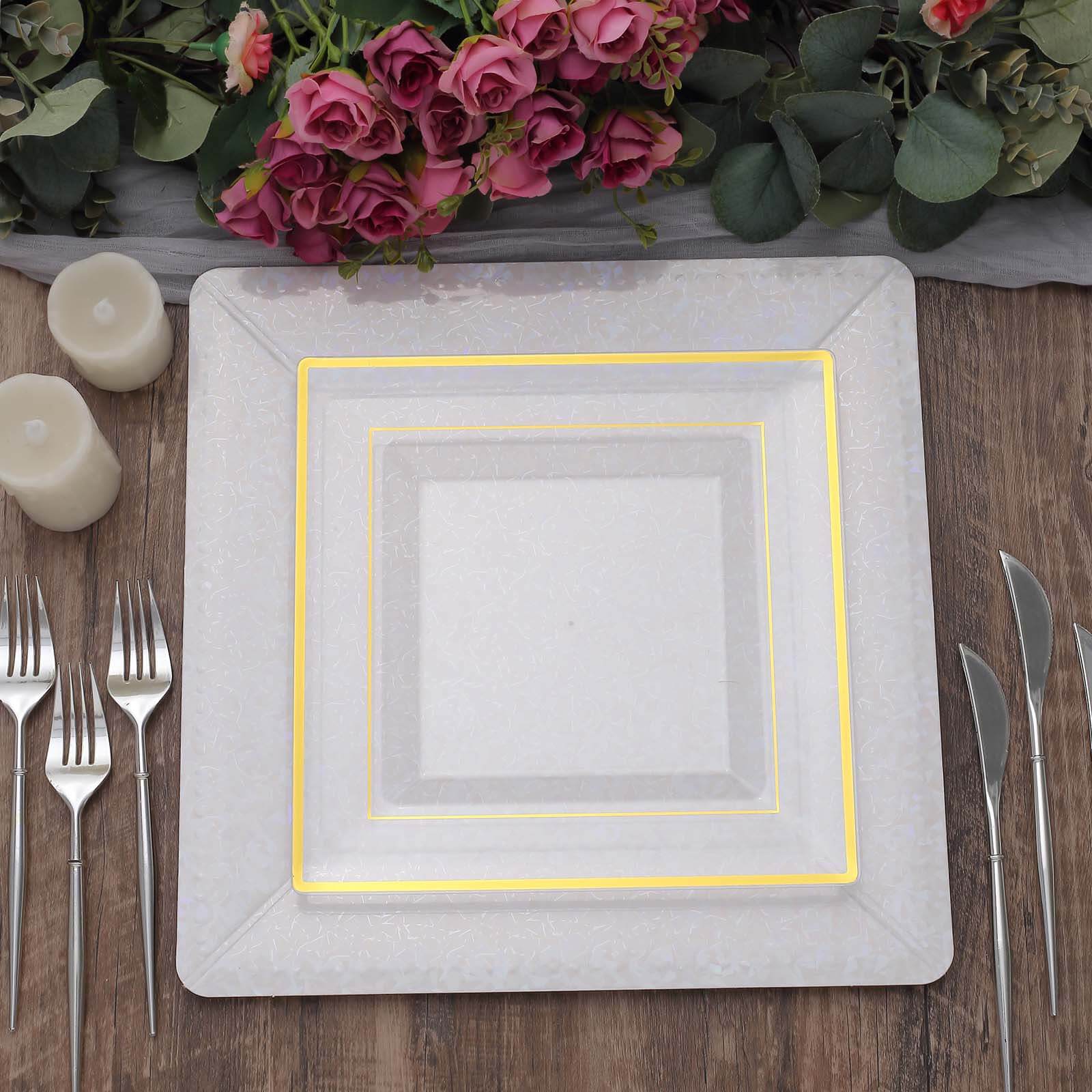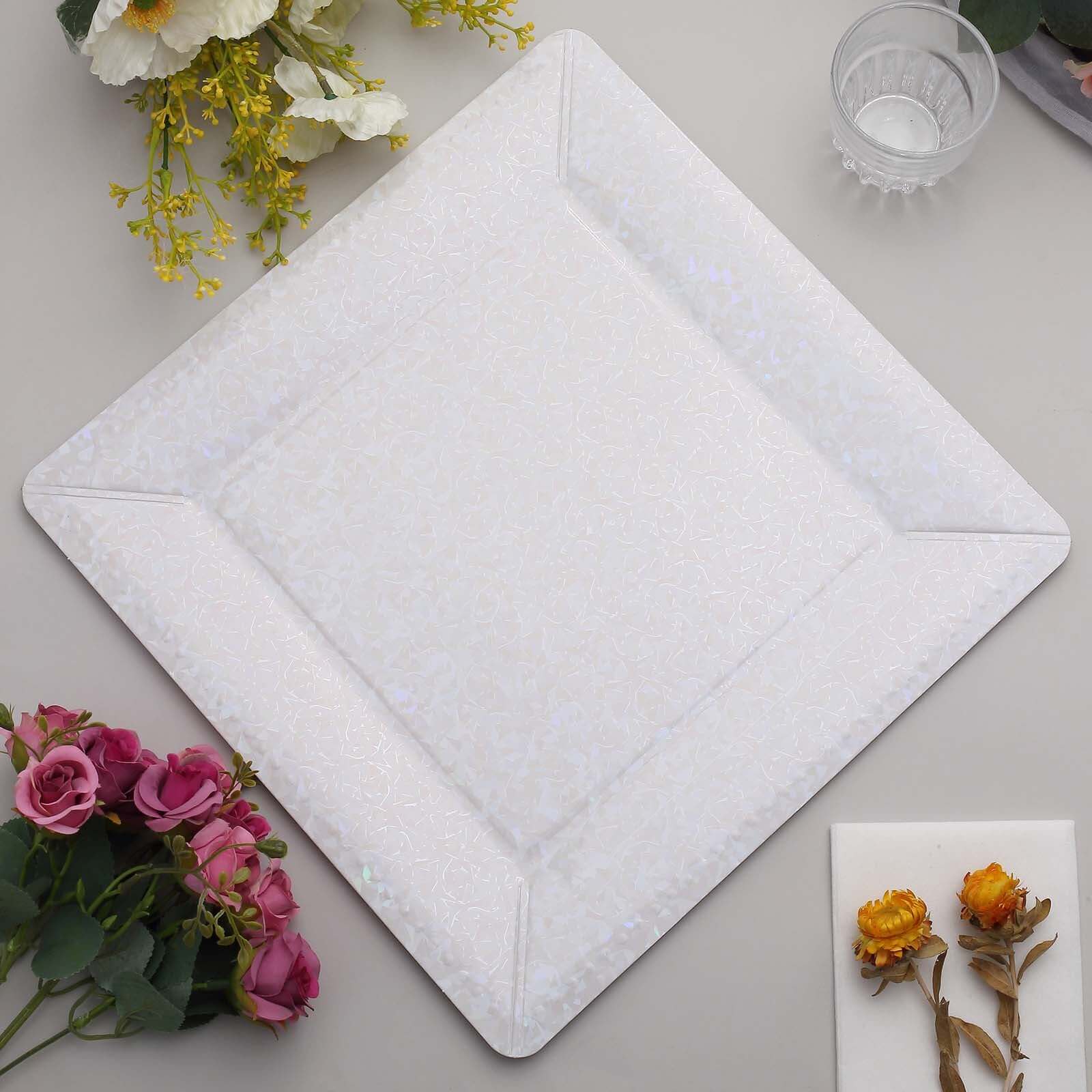 10-Pack Disposable Square Charger Plates in Iridescent with Leather Like Texture - 1100GSM Durable Paper Chargers 13"