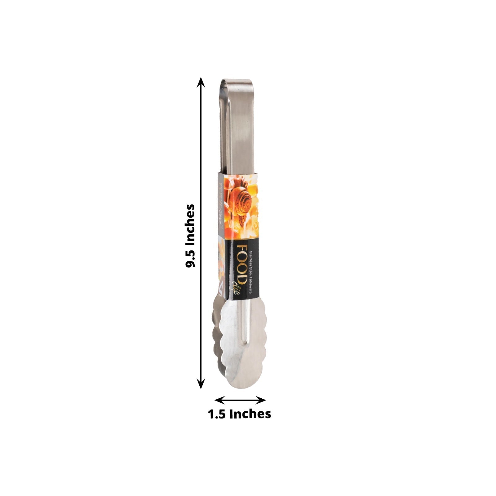 10-Pack Metal Serving Tongs Silver - Stainless Steel Food Safe Kitchen Tongs with Scalloped Gripping Edge for Indoor & Outdoor Gatherings 9.5"
