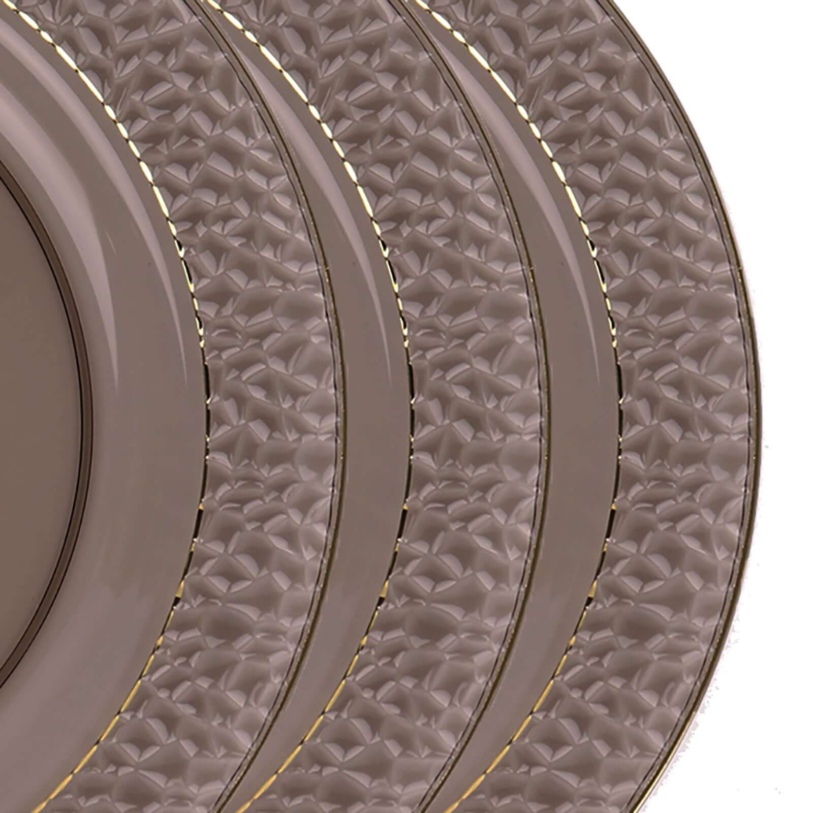 10-Pack Plastic 10" Round Dinner Plates in Opaque Black Hammered Design with Gold Rim - Disposable Party Plates for Chic Banquets & Special Occasions