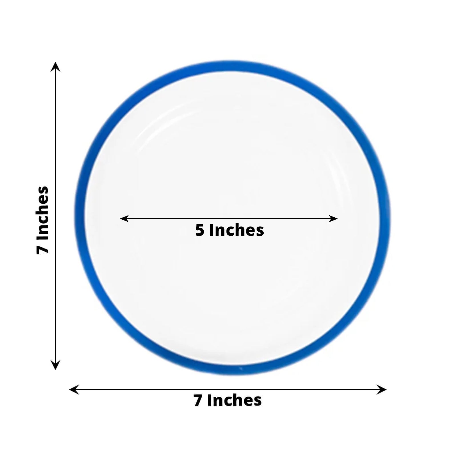 10-Pack Plastic 7" Round Appetizer Plates in Clear with Blue Rim - Sleek Disposable Salad Plates for Banquets & Special Occasions