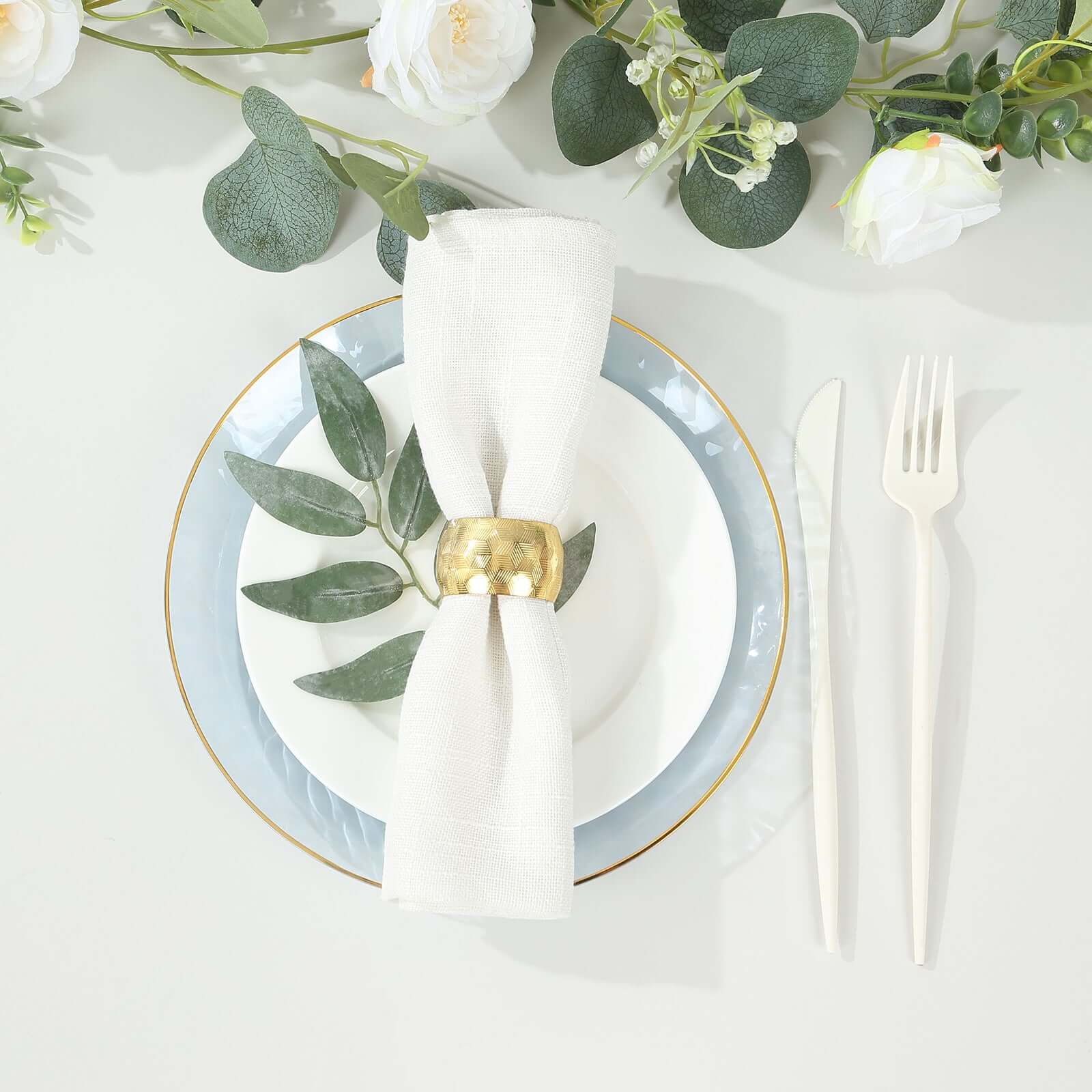 10-Pack Plastic 9" Round Dinner Plates in Transparent Dusty Blue Hammered Design with Gold Rim - Modern Disposable Party Plates