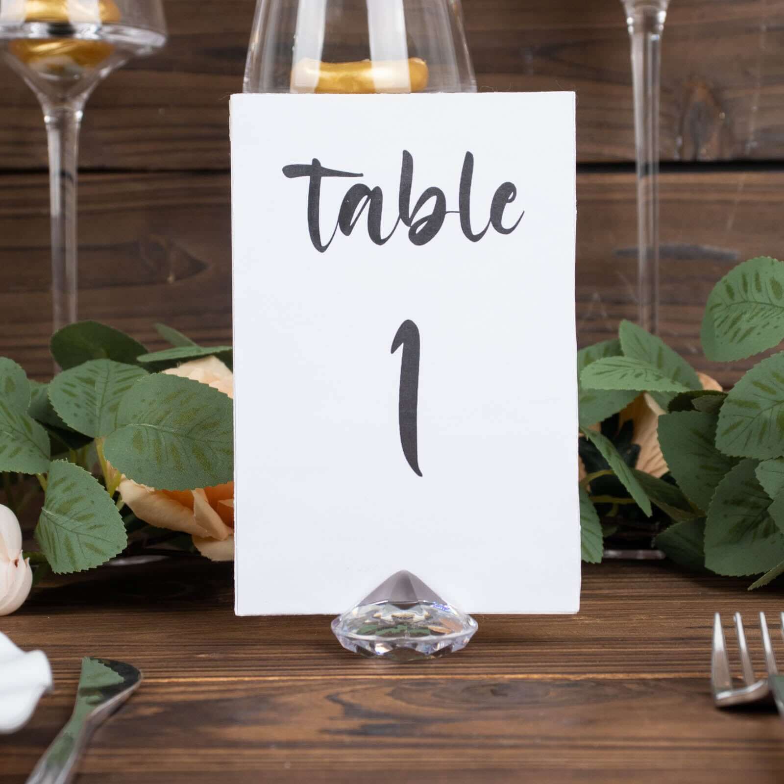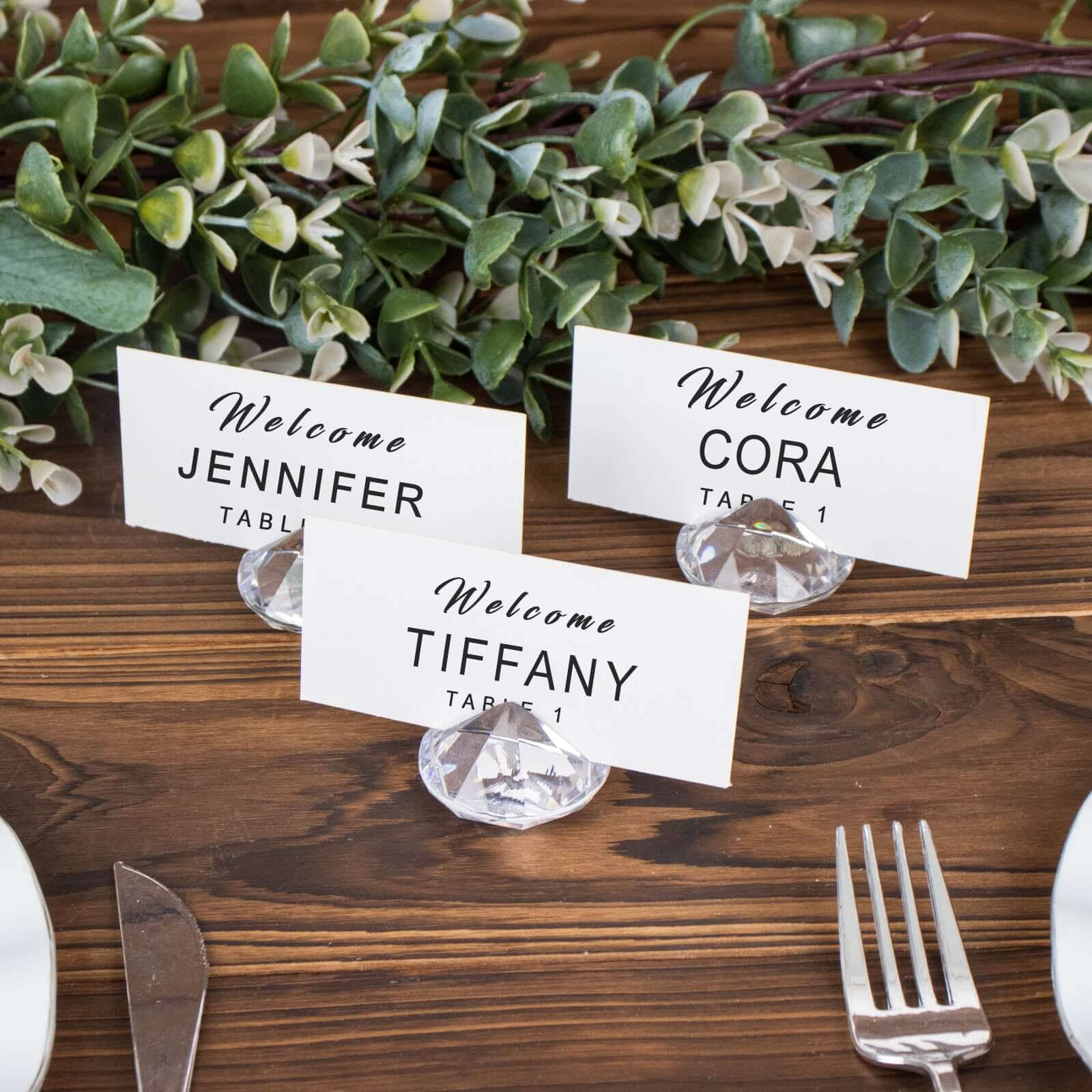 10-Pack Plastic Card Holder Stands Diamond Shaped Design Clear Crystal - Wedding Table Place Card Decorations 1.75"