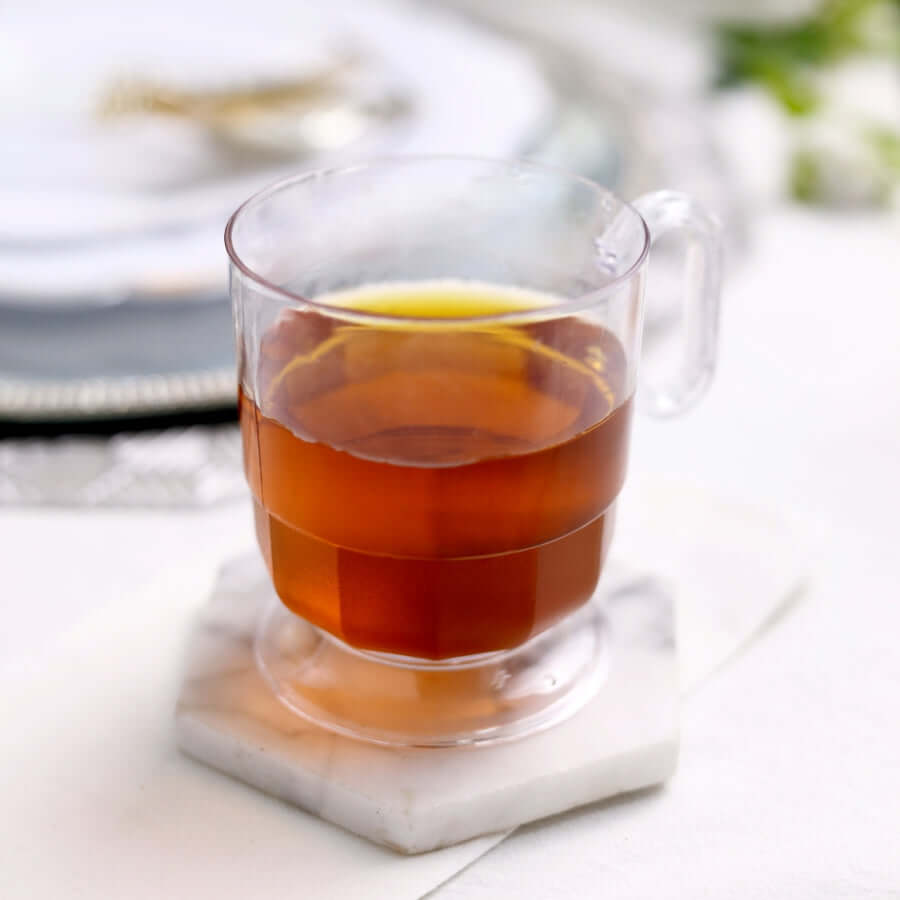 10-Pack Plastic Coffee Espresso Cups Clear - Disposable Mugs with Handles for Tea, Lattes & Hot Chocolate 5oz