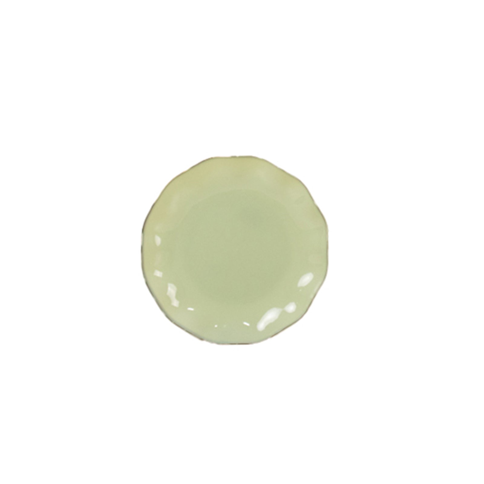 10-Pack Plastic Round 6" Dessert Plates in Sage Green Ruffled Rim with Gold Edging - Sturdy Disposable Salad Appetizer Dinnerware