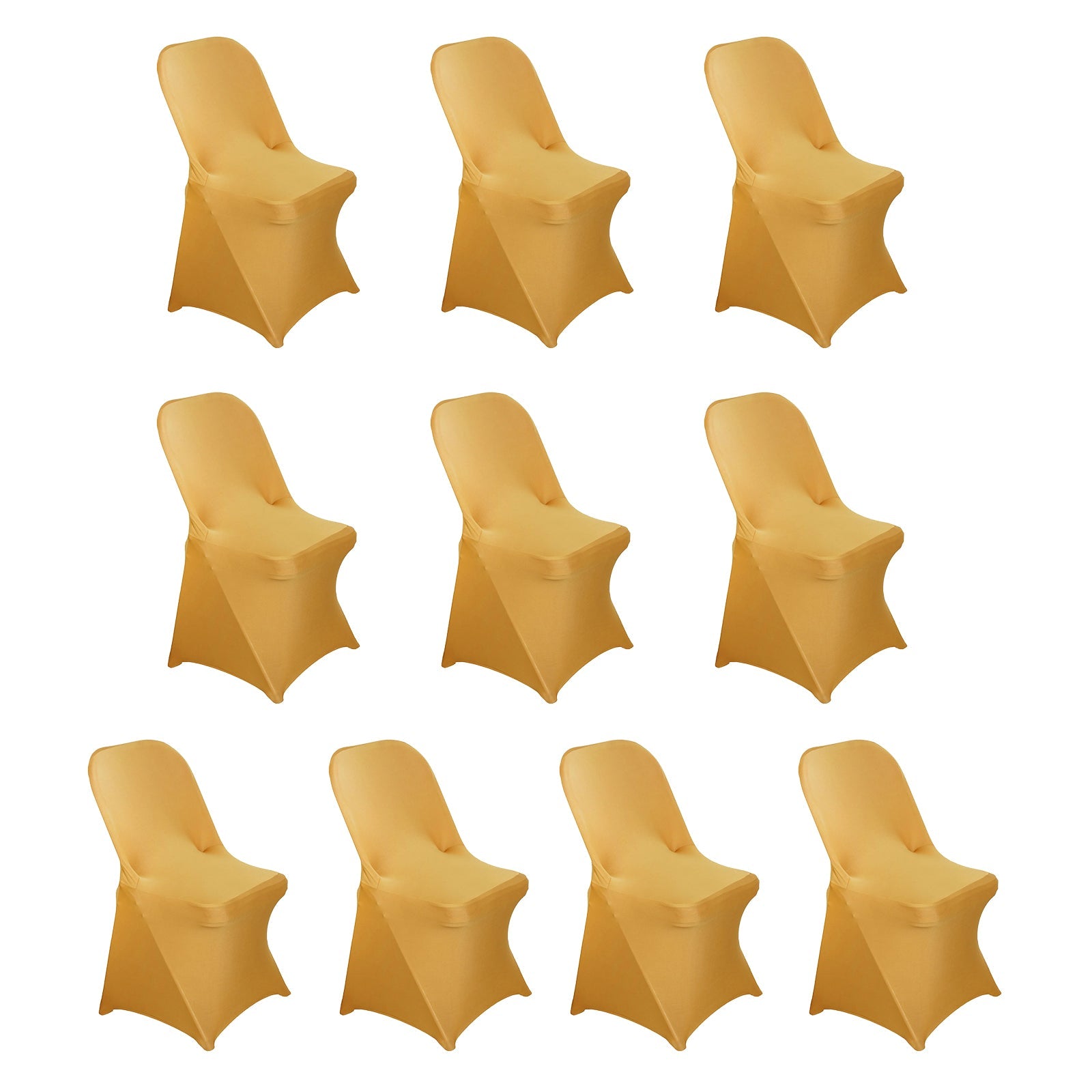 10 Pack Stretch Spandex Chair Covers Gold for Folding Chairs - Durable Perfectly 160GSM Fitted Slipcovers for Professional & Casual Events