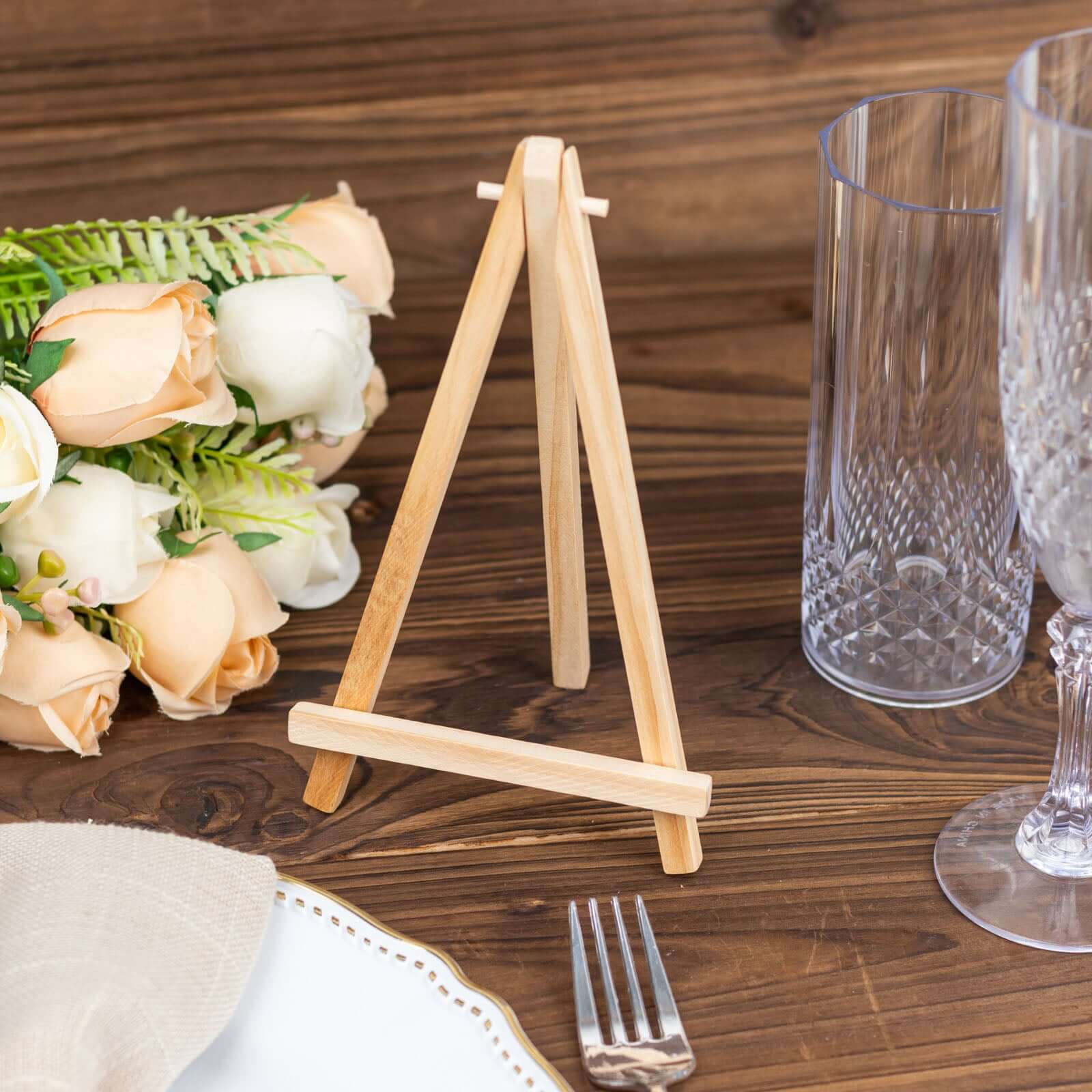 10-Pack Wooden Display Easel Stands DIY Small Design Natural - Rustic Place Card Table Number Holders 7"