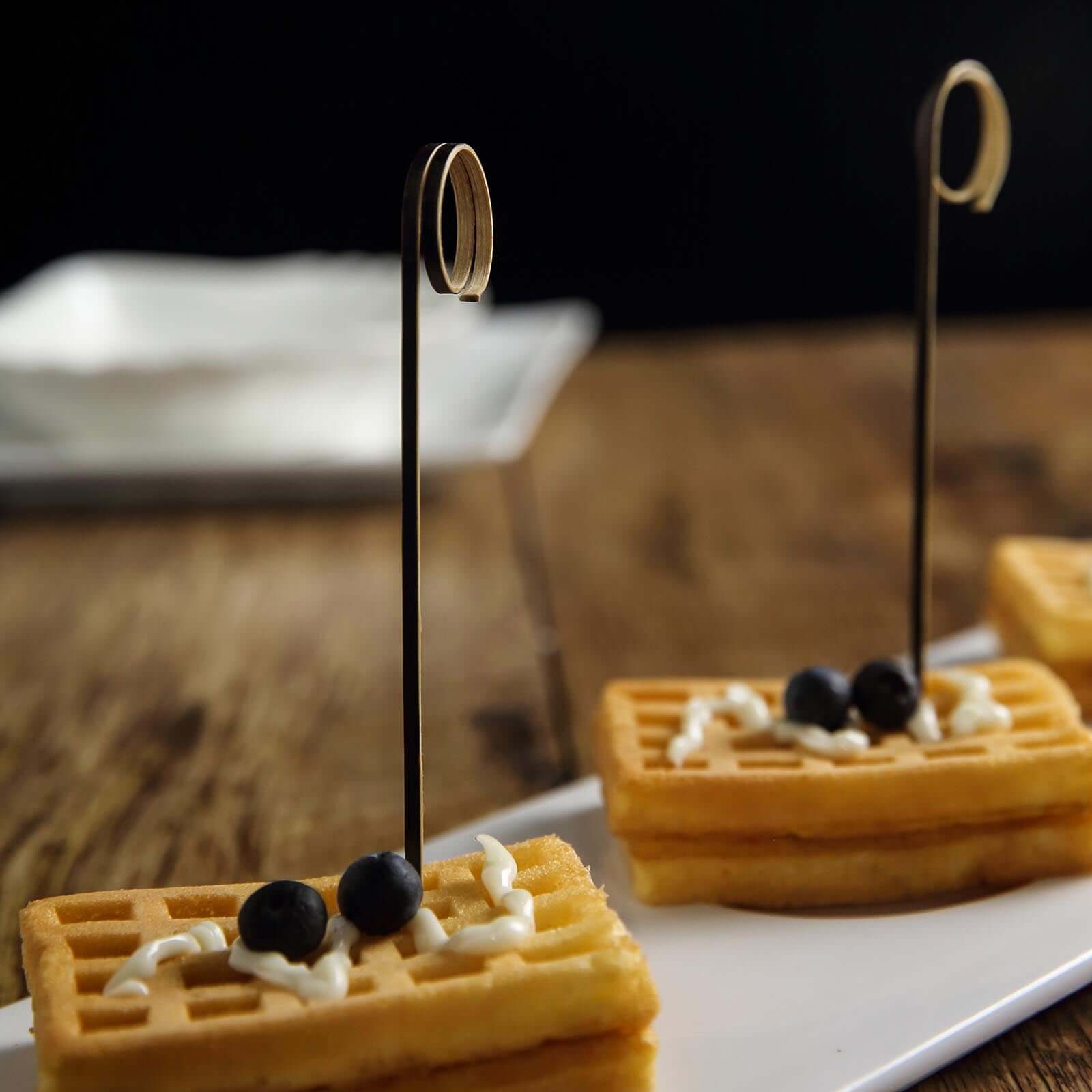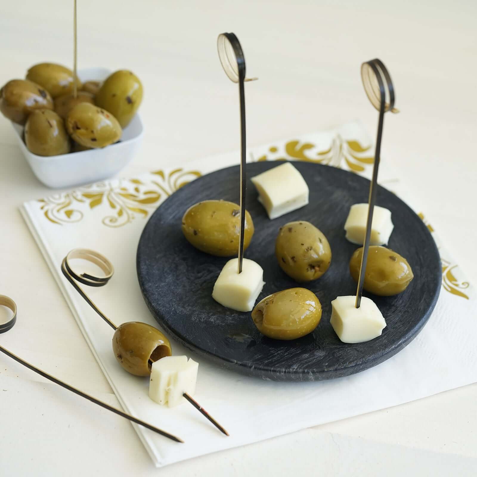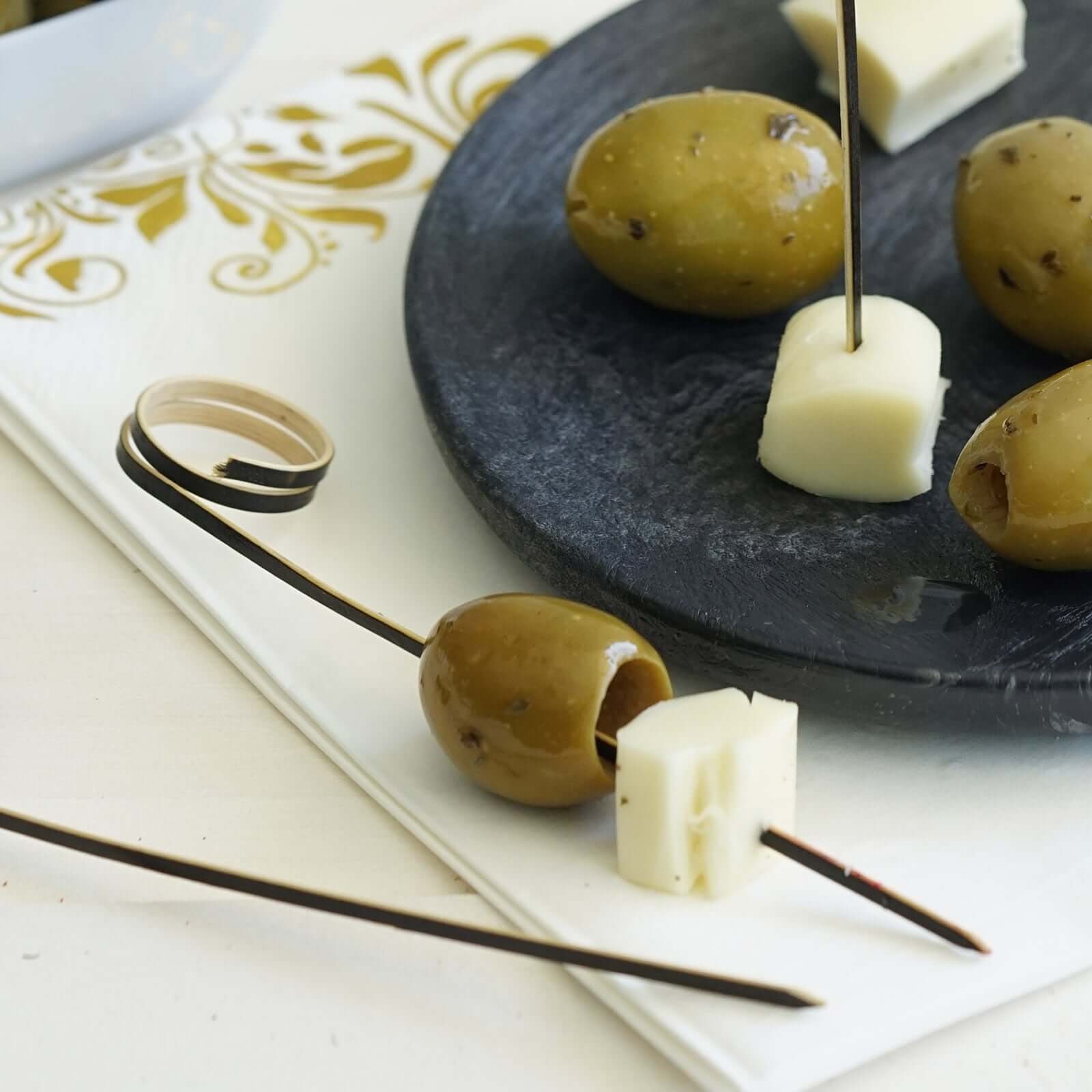 100-Pack Bamboo Cocktail Sticks Black Loop Ring Decorative Top Design - Eco Friendly Party Picks 5"