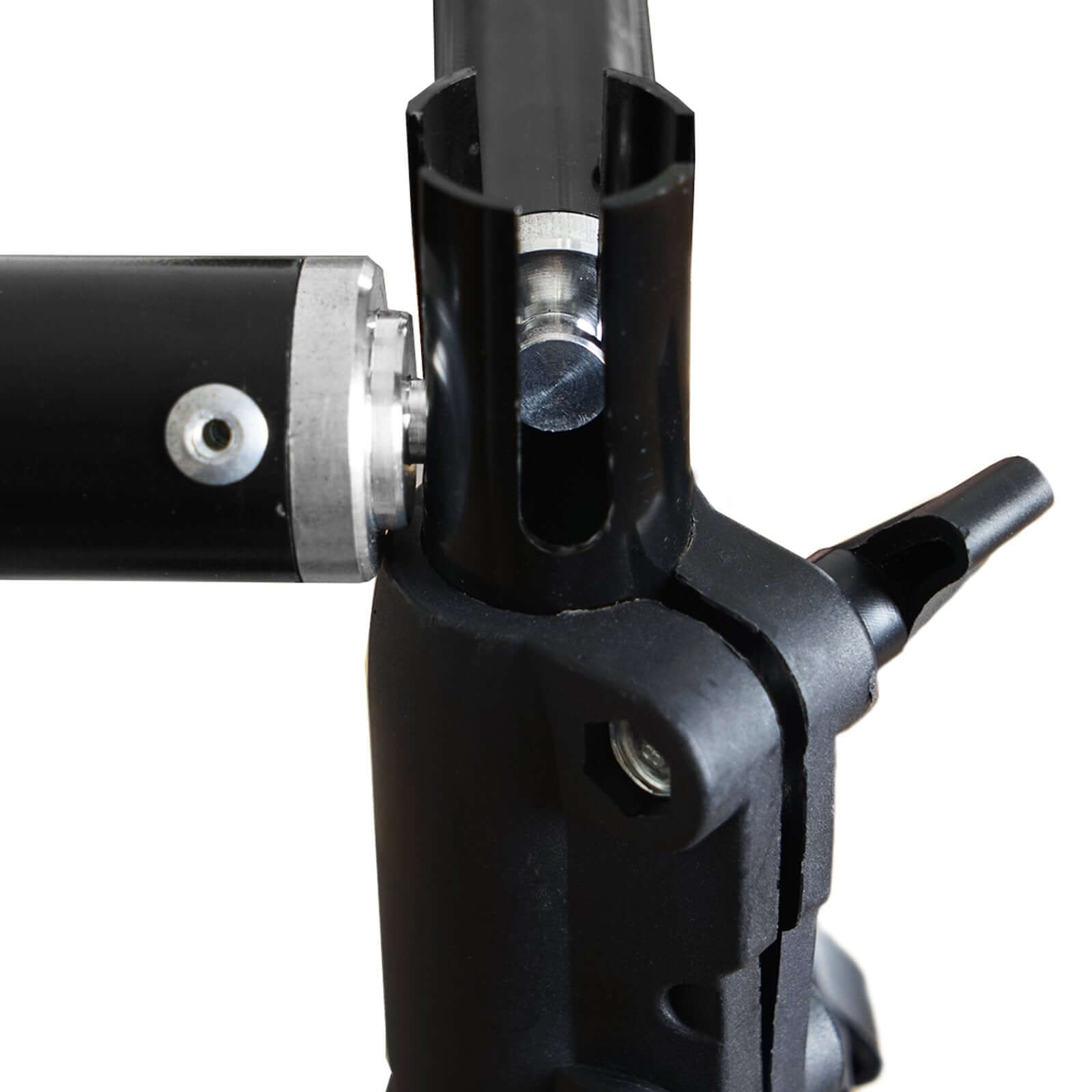 | Cross bar locking system at top of 4 support stands. |