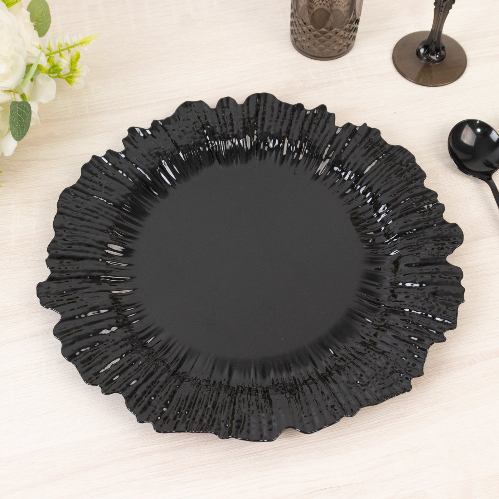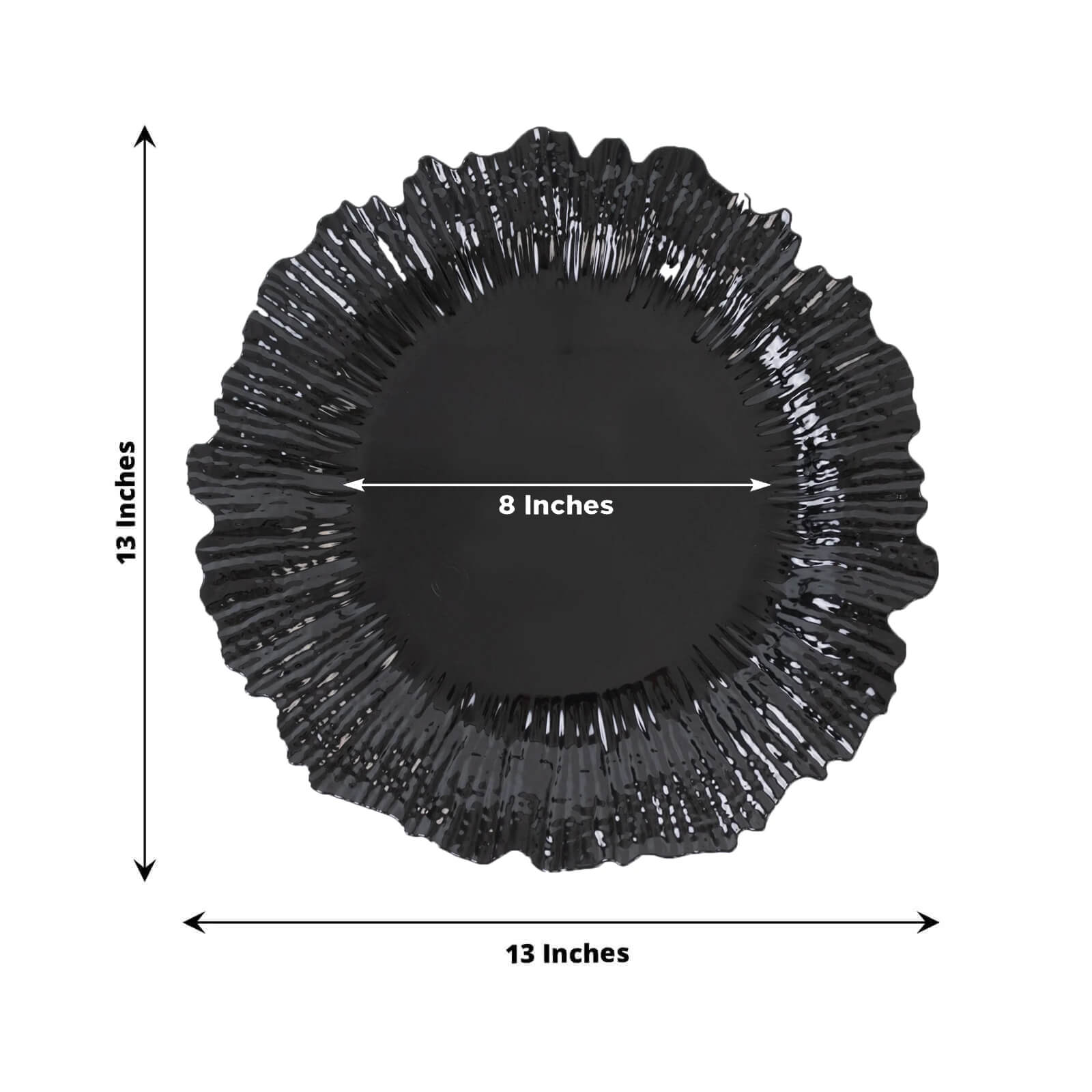 10 Pack Economy Reef Plastic Charger Plates – 13" Black Dinner Plate Chargers for Weddings, Parties & Catering