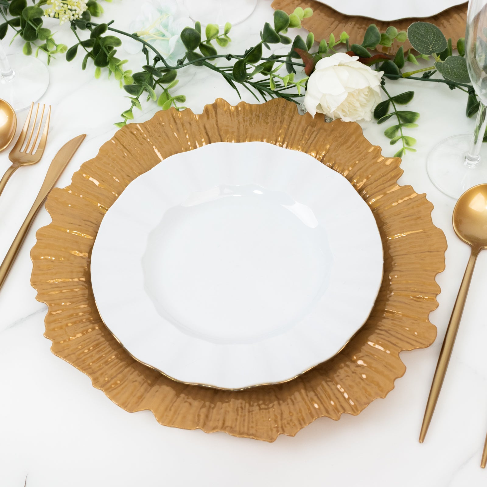 10 Pack Economy Reef Plastic Charger Plates – 13" Gold Dinner Plate Chargers for Weddings, Parties & Catering