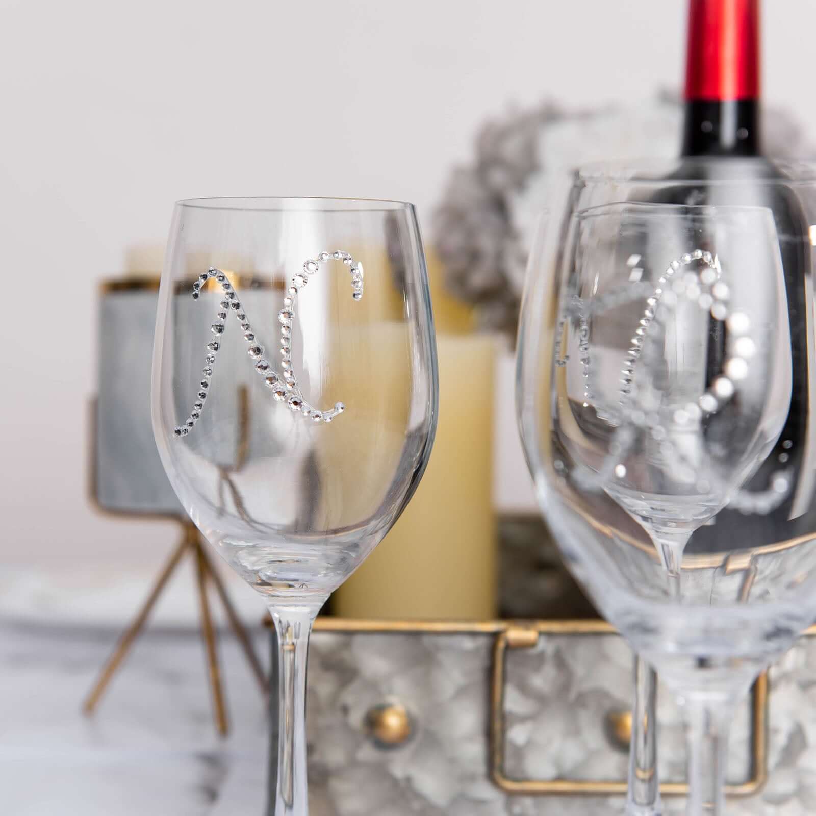 12 Pack 1.5" Clear Rhinestone Monogram Letter Jewel Sticker Self Adhesive DIY Diamond Decor - V