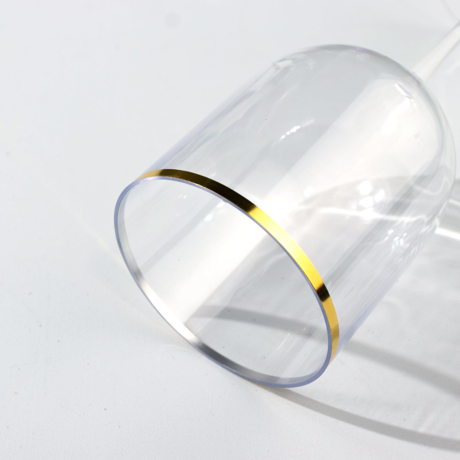 12-Pack 12oz Clear Plastic Wine Goblets with Gold Rim, Premium Disposable Long Stem Glassware - 9"