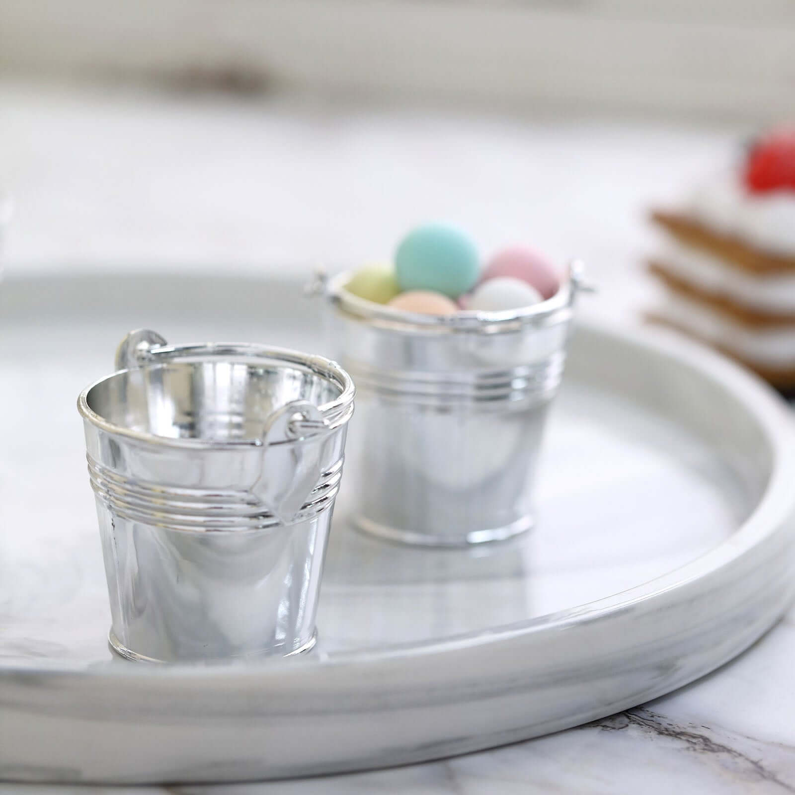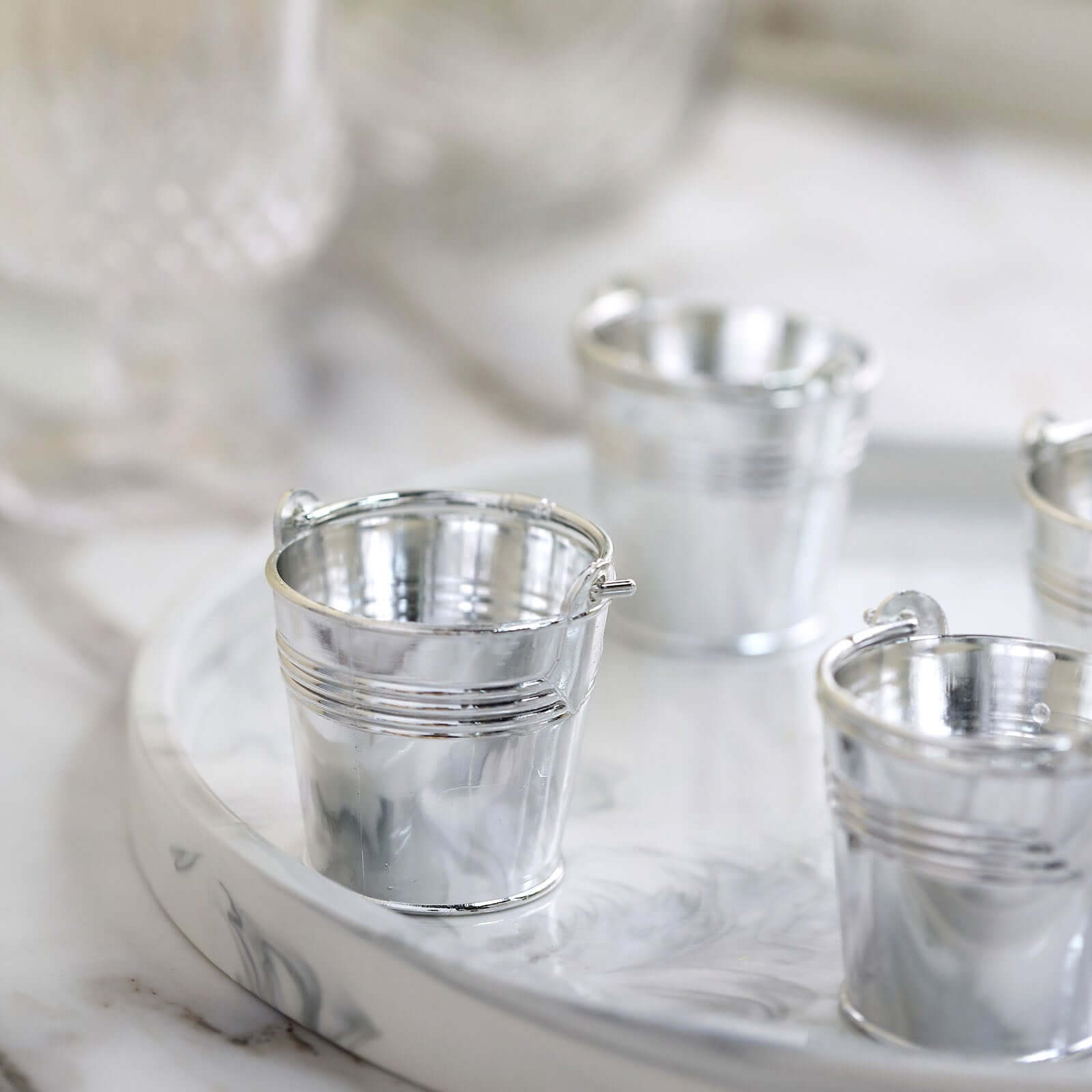 12 Pack 2" Silver Mini Planter Treat Party Favor Boxes, Small Pail Bucket Candy Container Gift Boxes