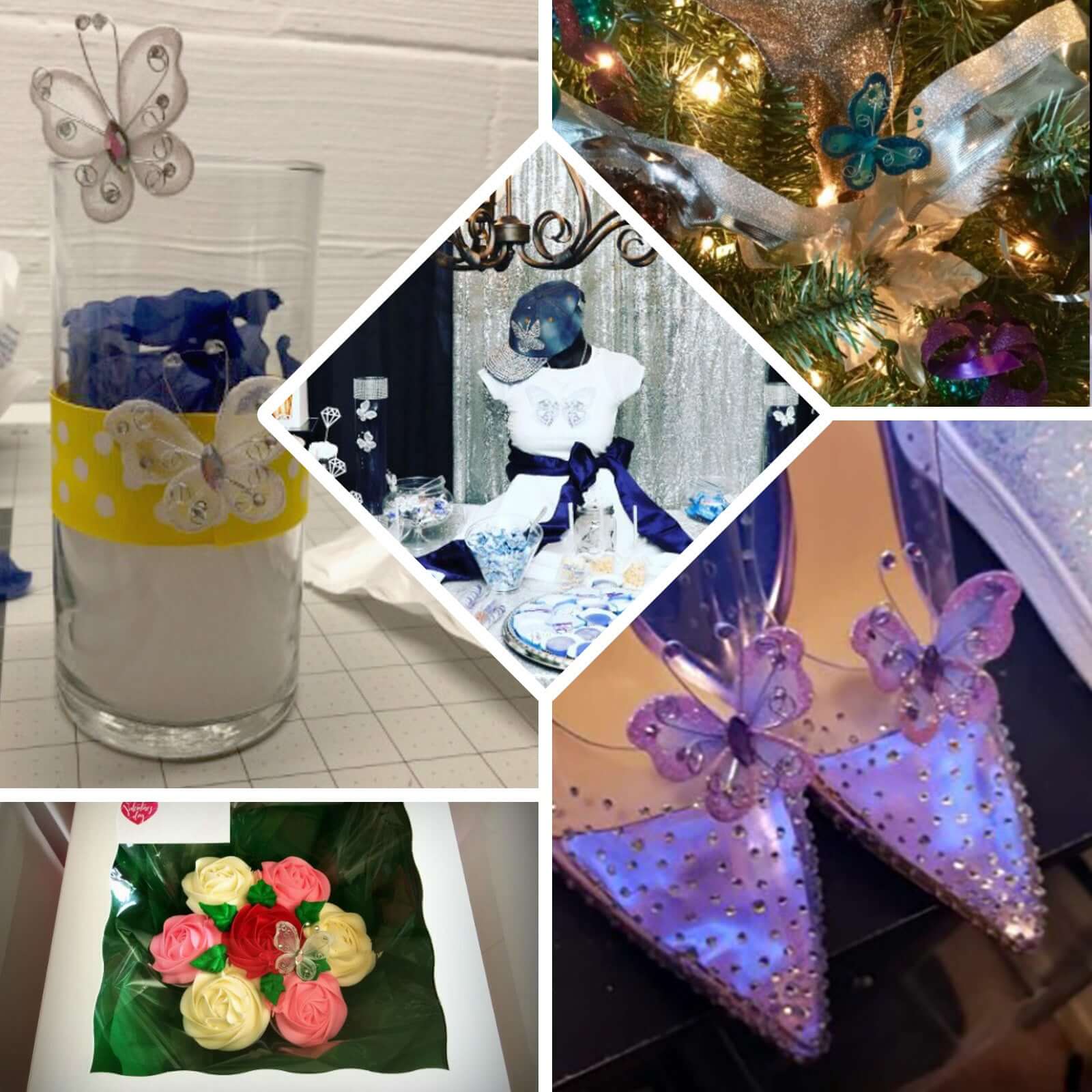 | Style: Butterflies with Acrylic Diamonds and Glitter highlights |