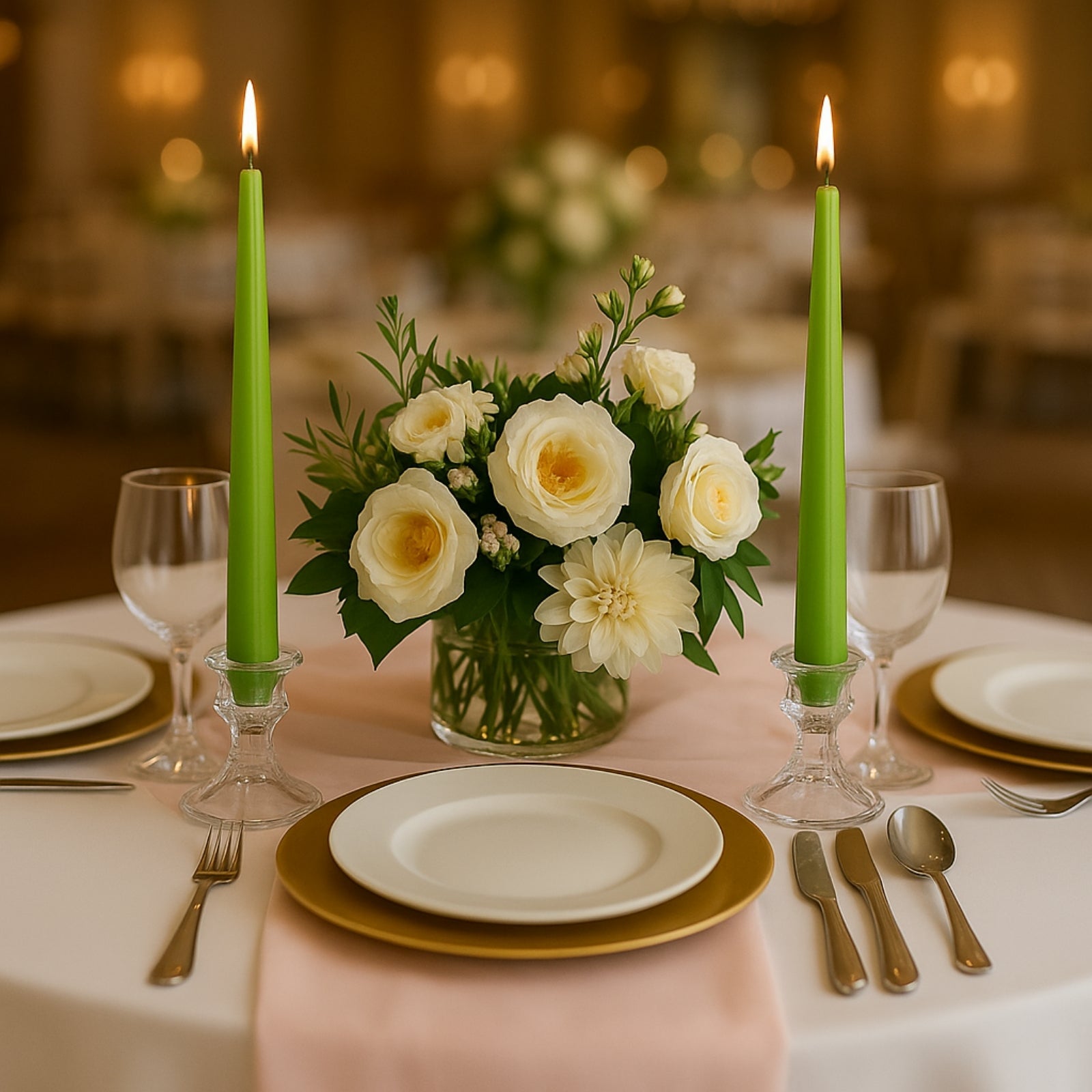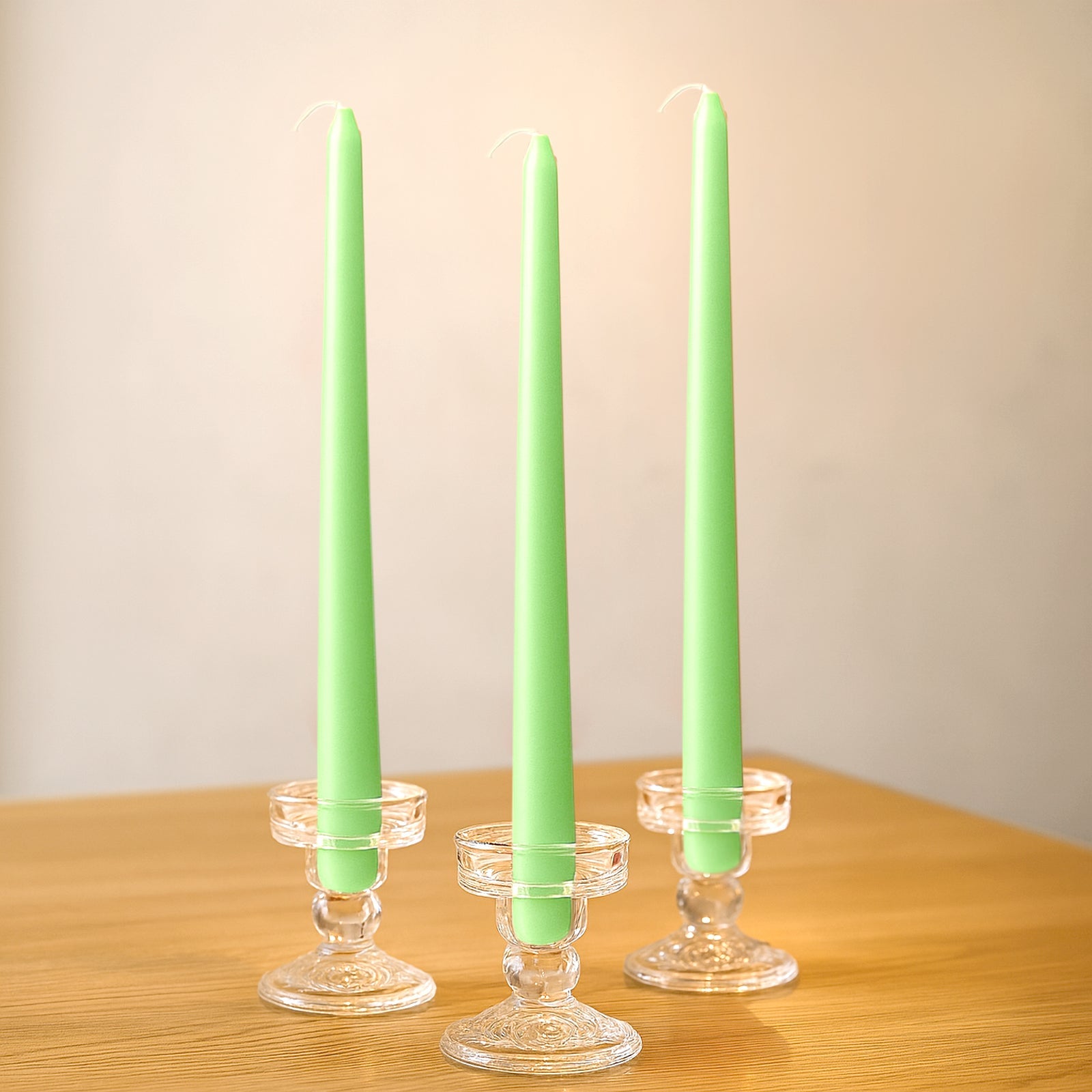 10-Pack Taper Candles Premium Wax Design Apple Green - Unscented Candles for Upscale Settings 10"