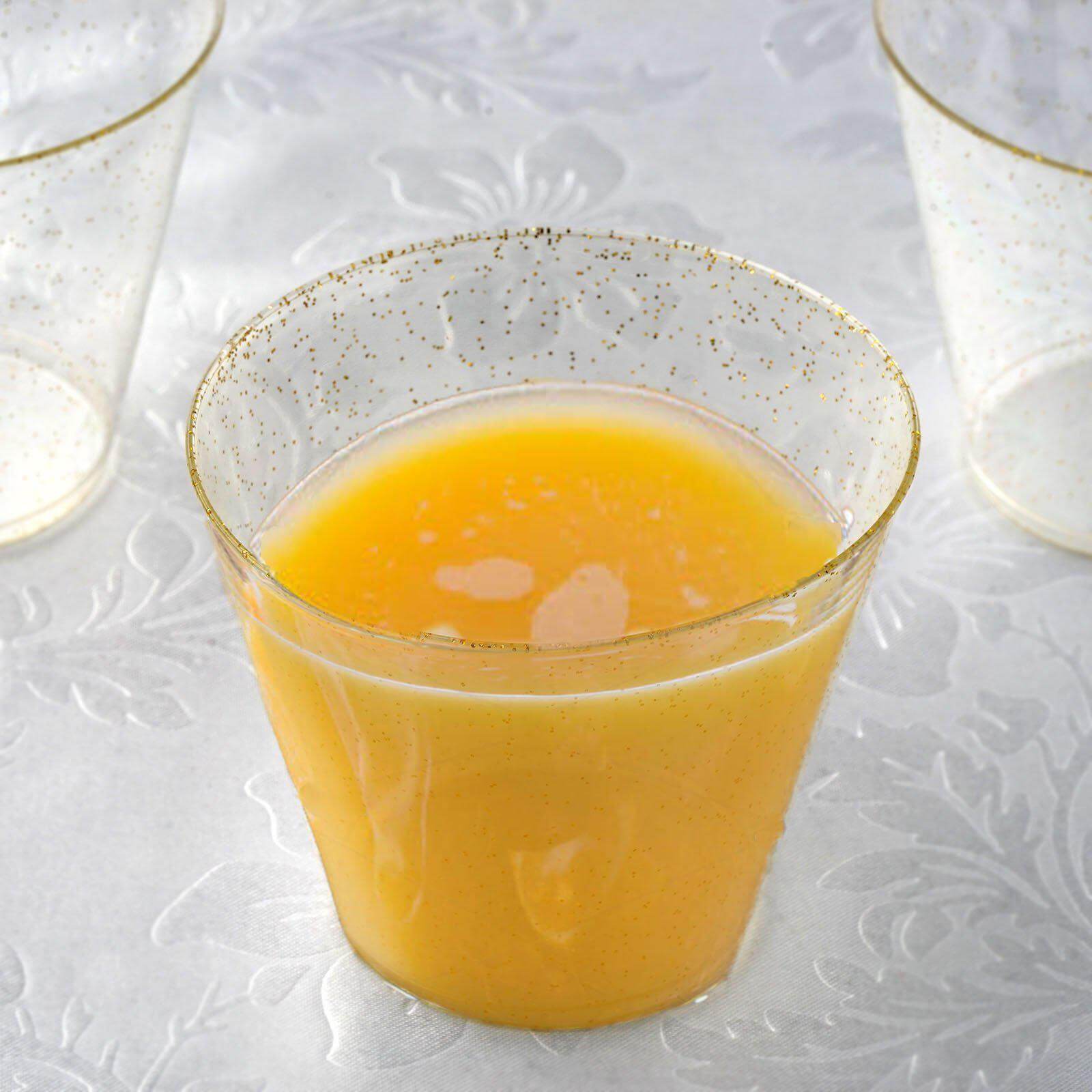12-Pack Plastic Party Glasses Gold Glittered - Sparkly Disposable Cups for Events 9oz