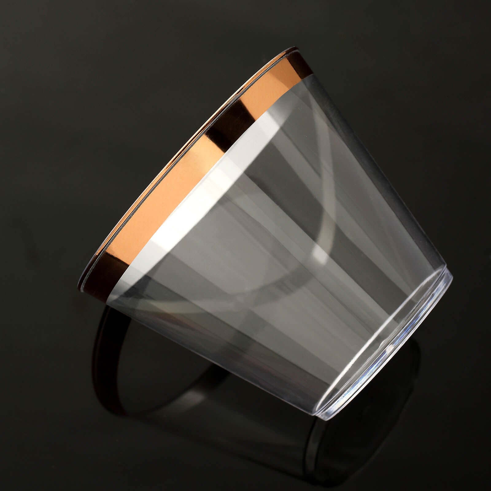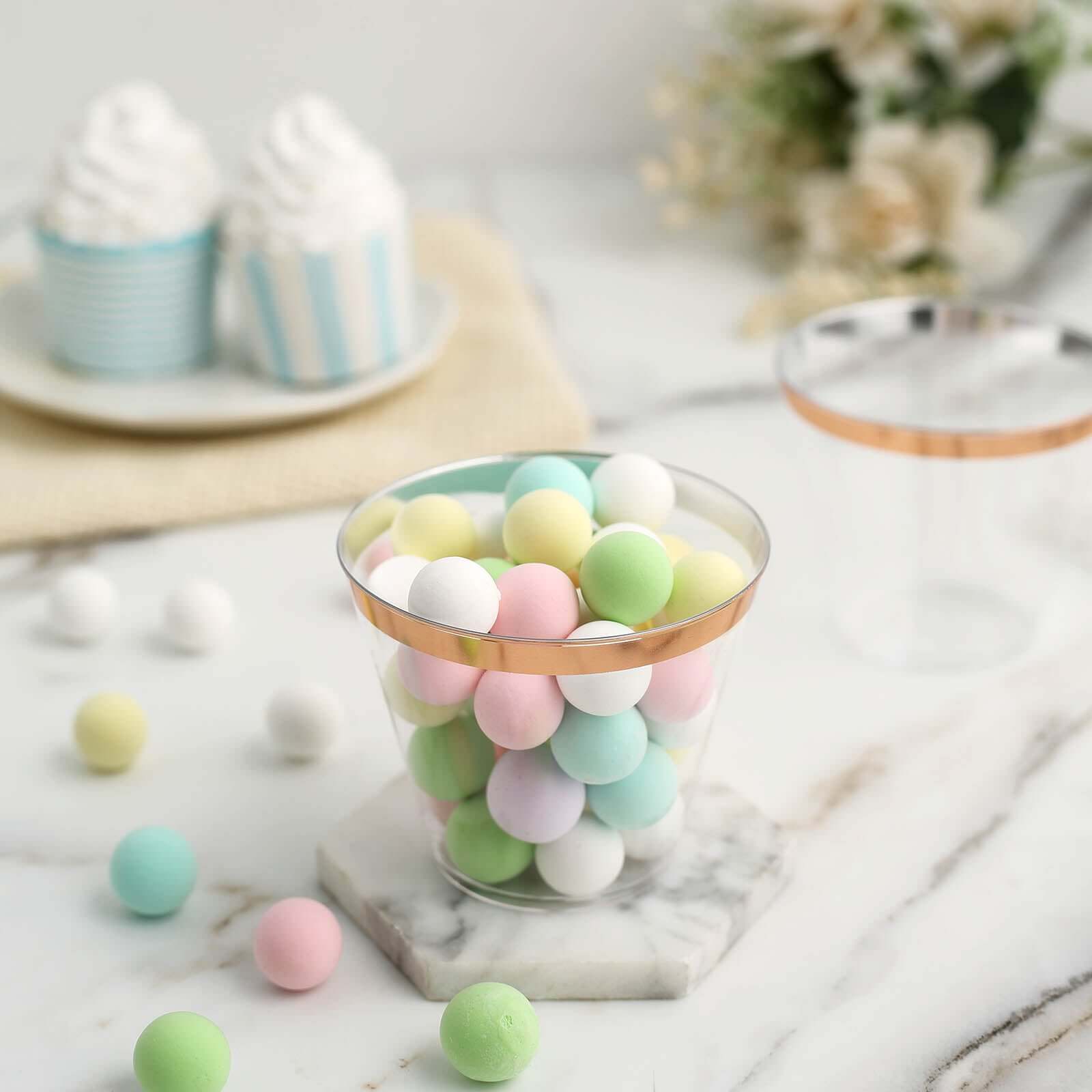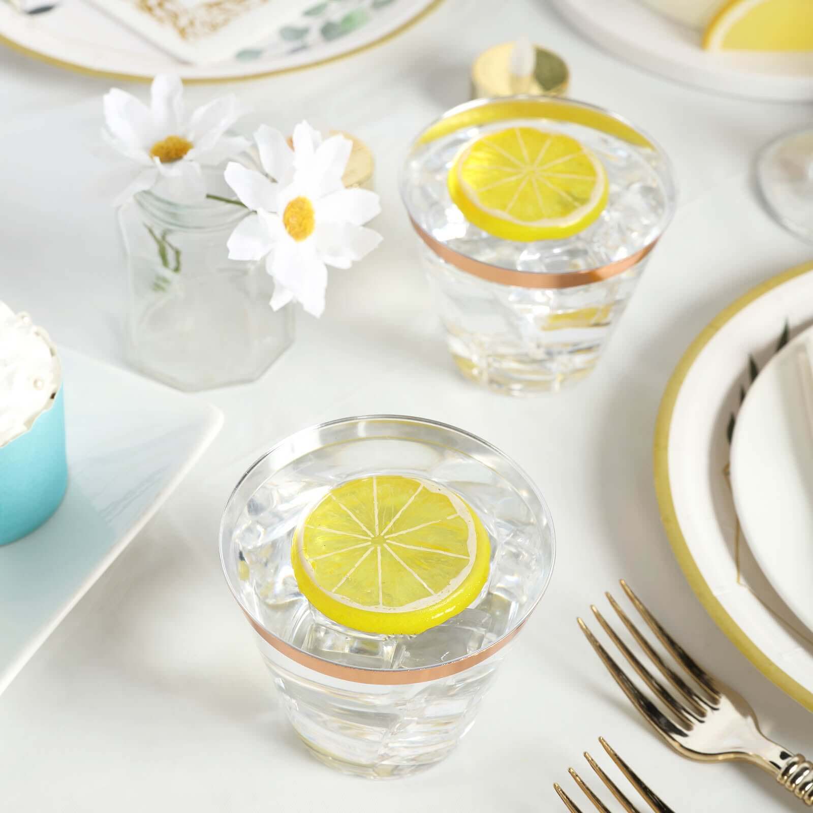 12-Pack Plastic Party Squat Cups Clear with Rose Gold Rim - Stylish Disposable Tumblers for Banquets & Special Occasions 10oz