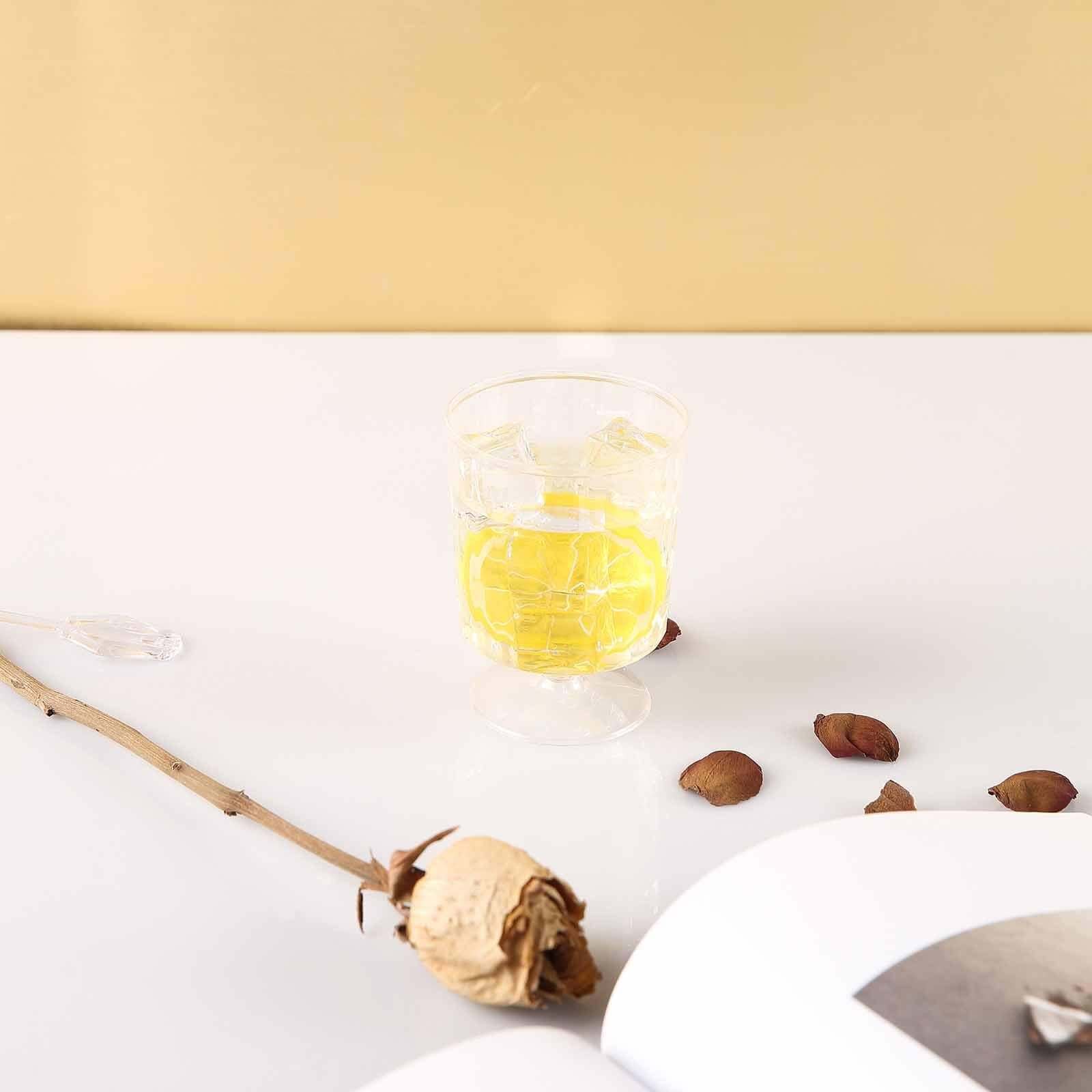 Tablecloths Factory always keeps its customers upscale demands and celebration needs as a priority. Introducing an elegant and innovative design to help you raise a toast of festive joy with pure class and brimming jubilancy. This disposable wine glass is crafted from shiny and clear plastic that mimics the exquisiteness of real glassware. The trendy shape and delicate design makes it an ideal choice for elite parties, culinary events, indoor feasts, outdoor festivals, clubs, bars and restaurants. Serve your favorite beverage, desserts, cocktails, smoothies, Jell-O, or any other delectable delight you want to tempt your guests with. The convenience of disposability avoids the risk of breakage and shattering and also makes the clean-up time a breeze!