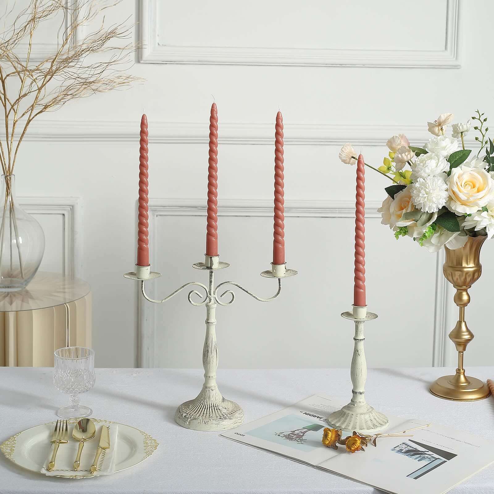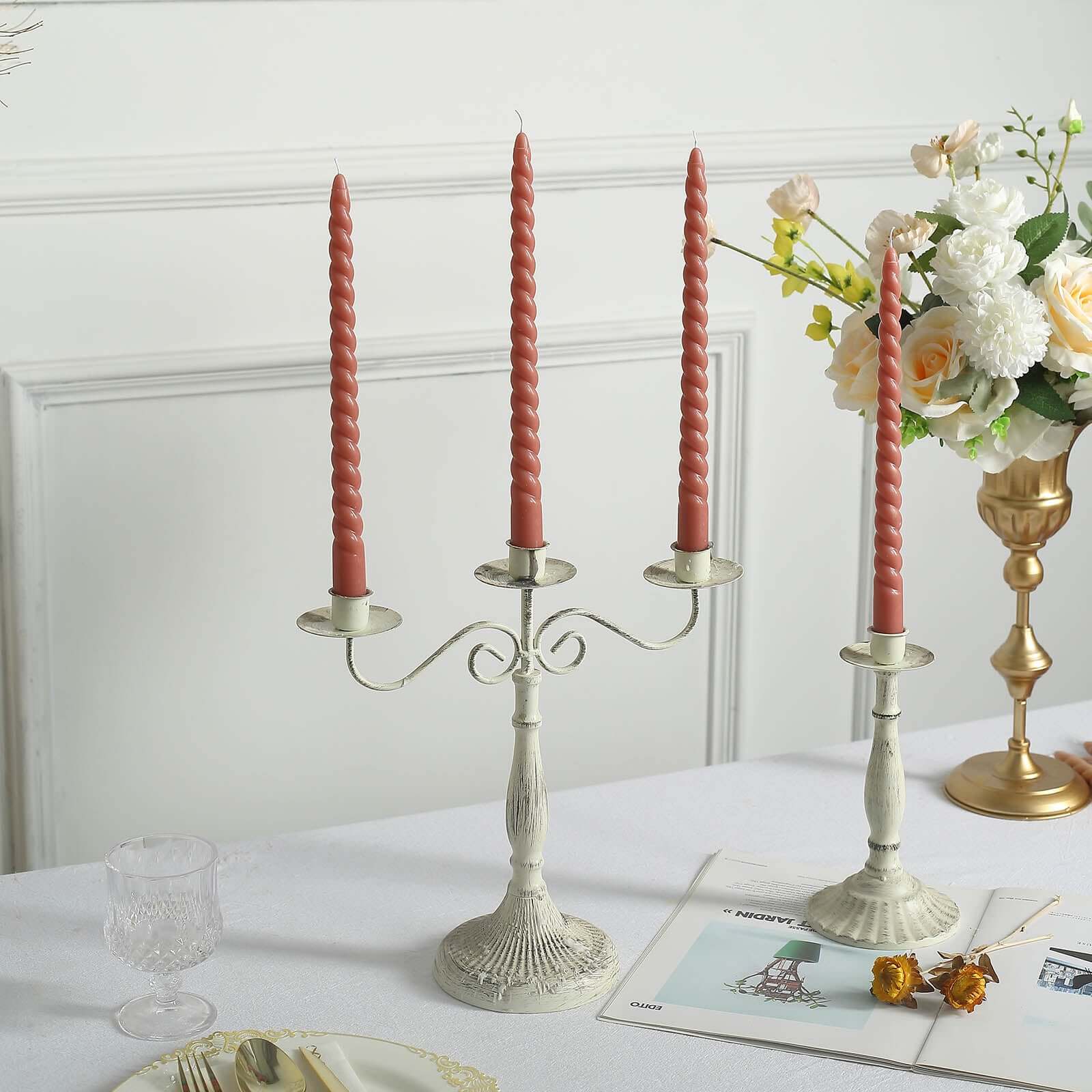 12-Pack Taper Candles Spiral Long Burn Wick Design Dark Nude - Premium Unscented Wax Dinner Candle Sticks 11"
