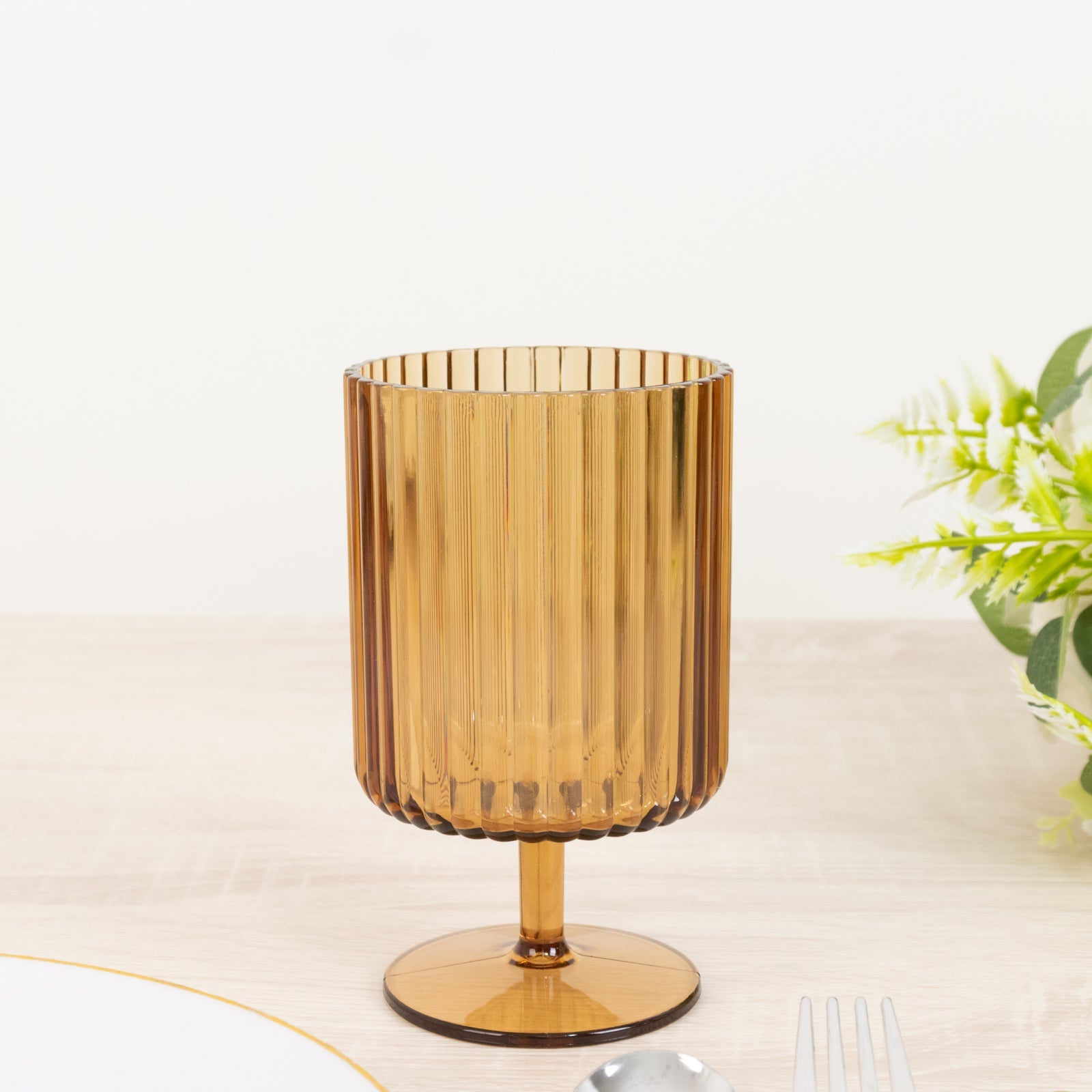 12-Pack Plastic Goblets Amber Gold Vintage Ribbed Pattern Short Stem - Reusable Wine Glasses 12oz