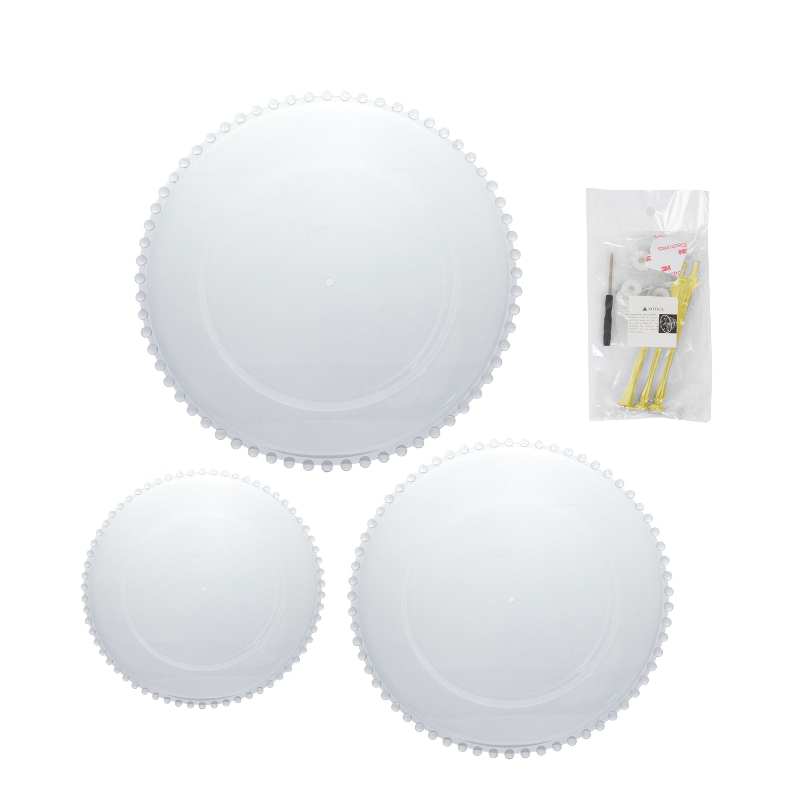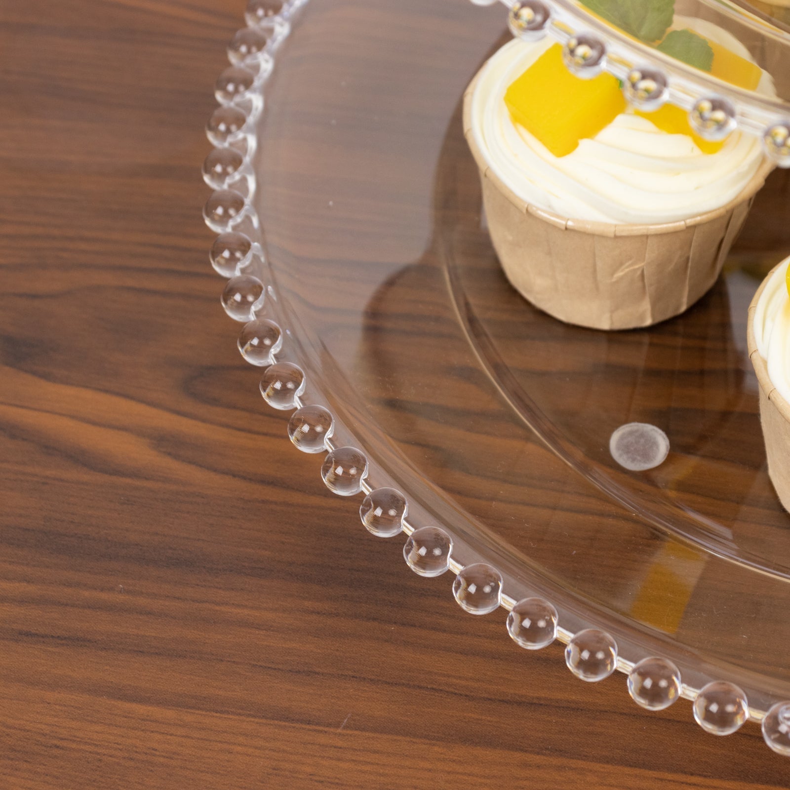 14" Clear 3-Tier Plastic Dessert Display Stand With Beaded Rim, Round Cupcake Tower Tea Party Serving Platter With Top Handle