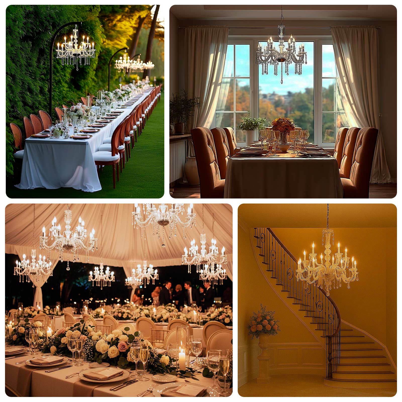 - Uses: Home Decor, Luxury Weddings, Galas, Banquets, Hotel Lobbies, Ballrooms, Restaurants, Bars etc.