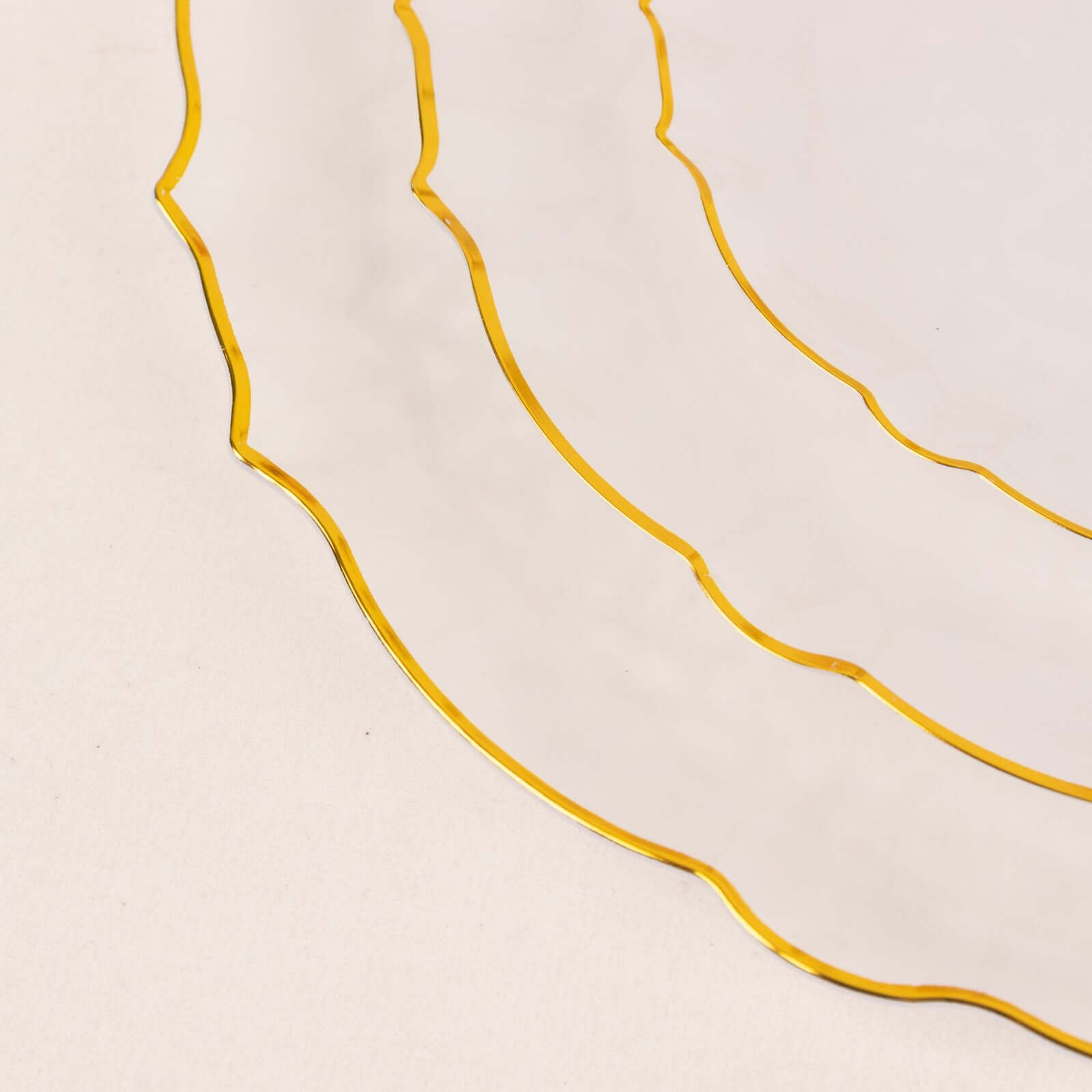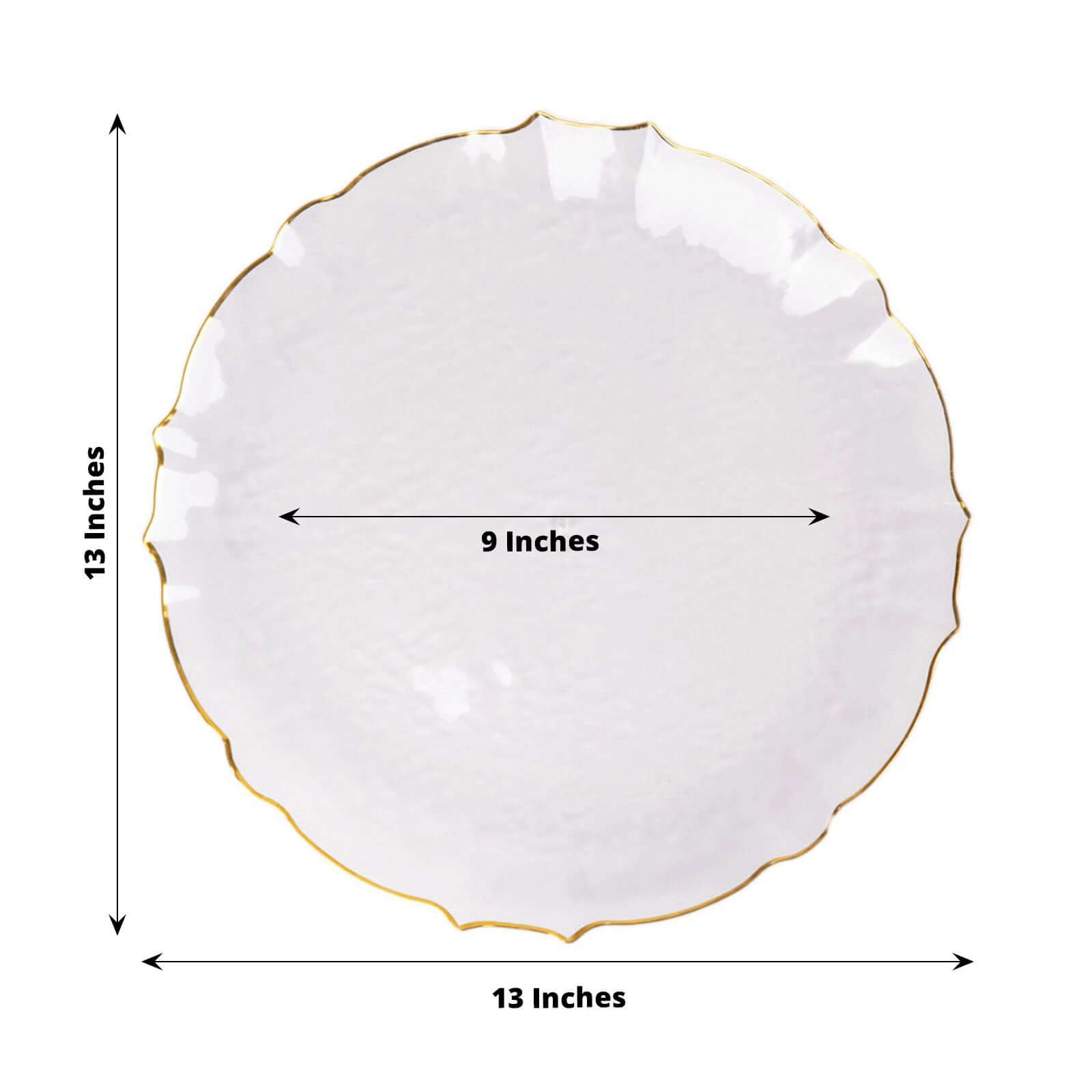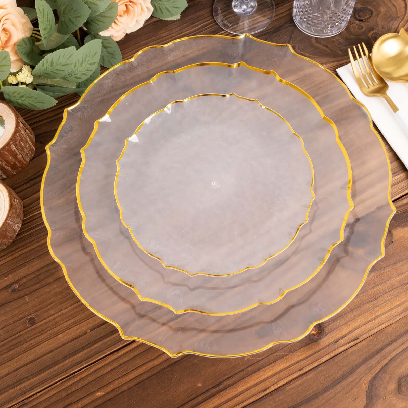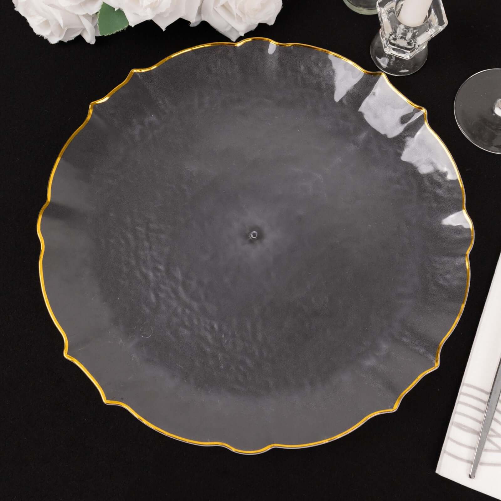 20 Pack Economy Plastic Round Charger Plates 13" in Clear Sunflower Design with Gold Scalloped Rim - Table Setting Plates