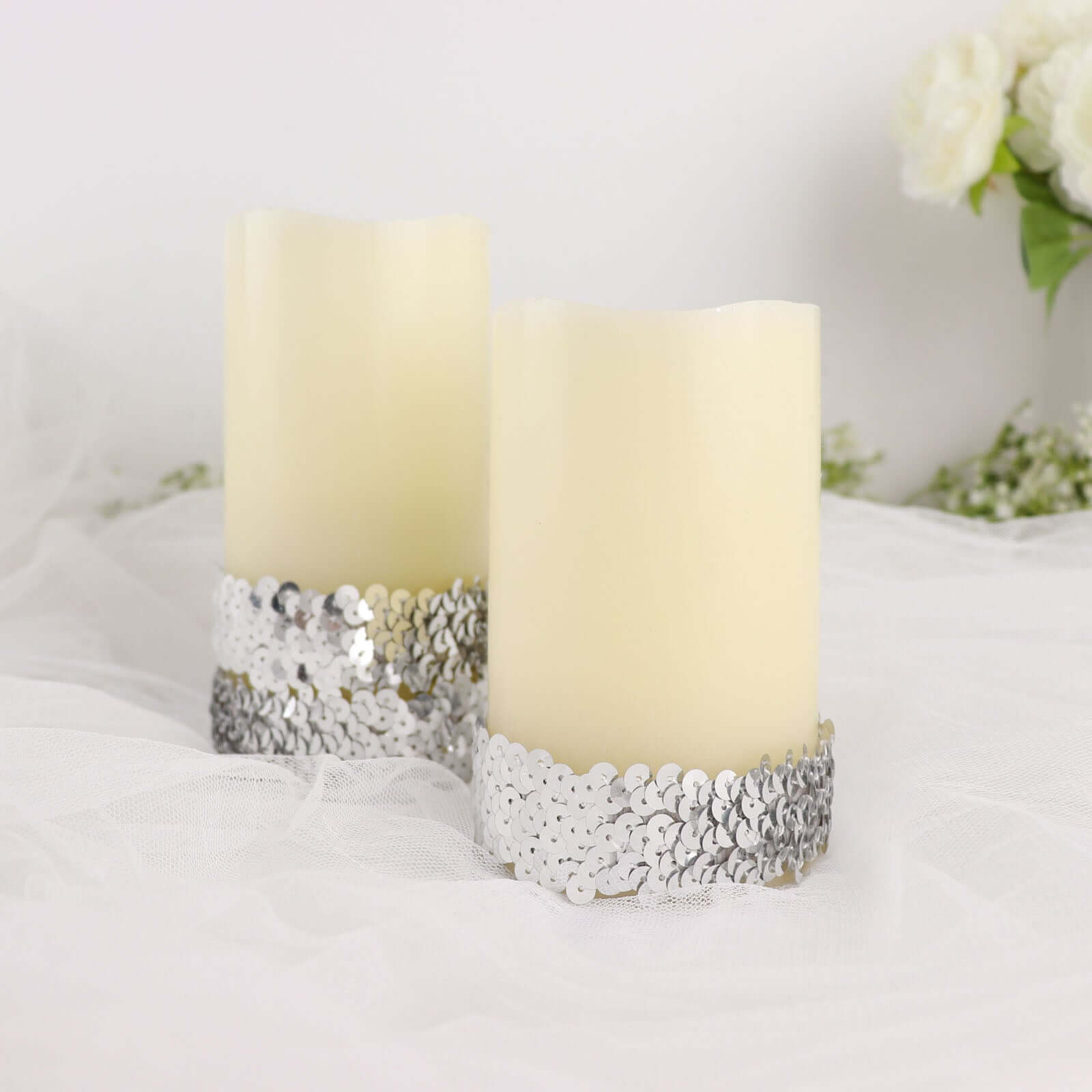1"x10 Yards Metallic Silver Sequin Stretch Fabric Ribbon, Elastic Lace Trim, Shiny Glitter Craft Fabric