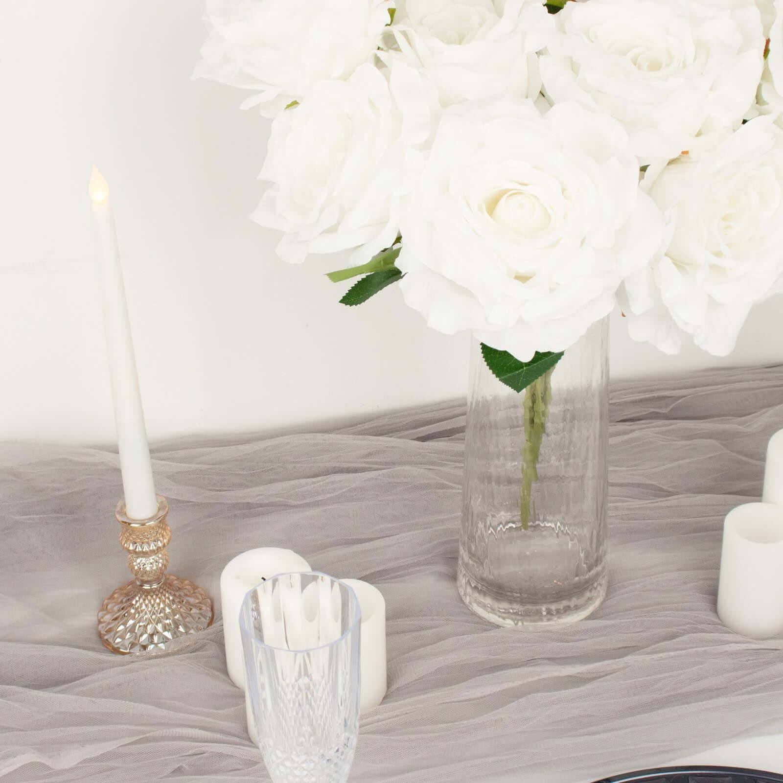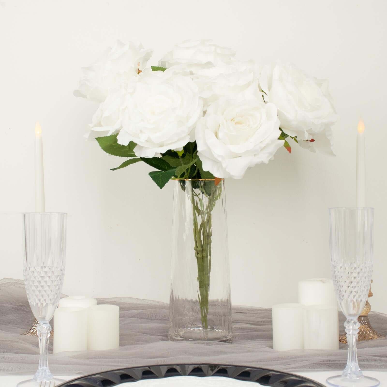 2 Bushes 17" White Premium Silk Jumbo Rose Flower Bouquet, High Quality Artificial Wedding Floral Arrangements