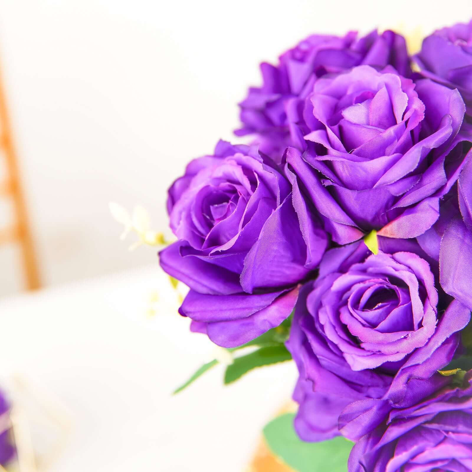 2 Bushes 18" Real Touch Purple Artificial Rose Flower Bouquet, Silk Long Stem Flower Arrangements
