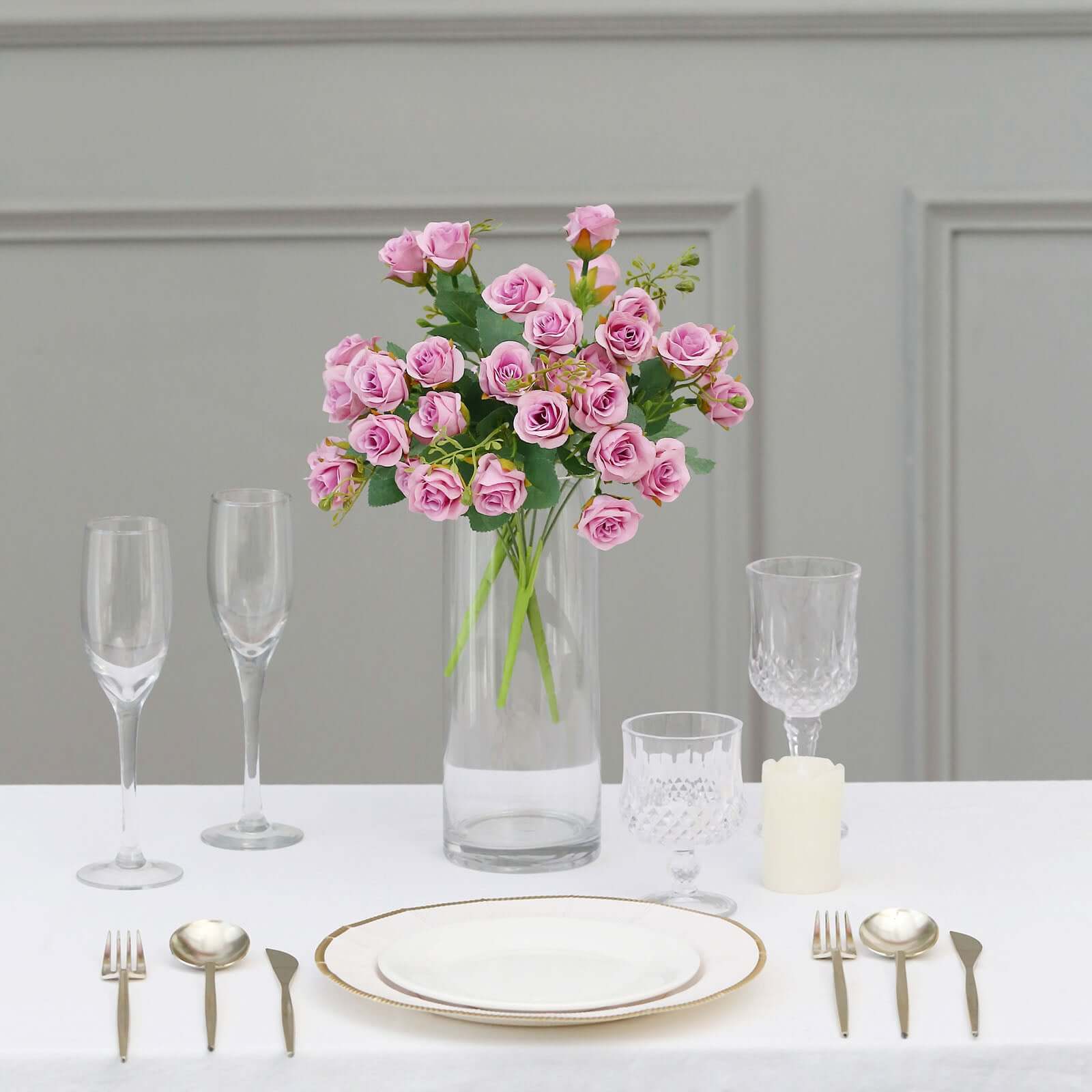 2 Pack 12" Lavender Lilac Artificial Open Rose Flower Arrangements, Small Faux Floral Bouquets