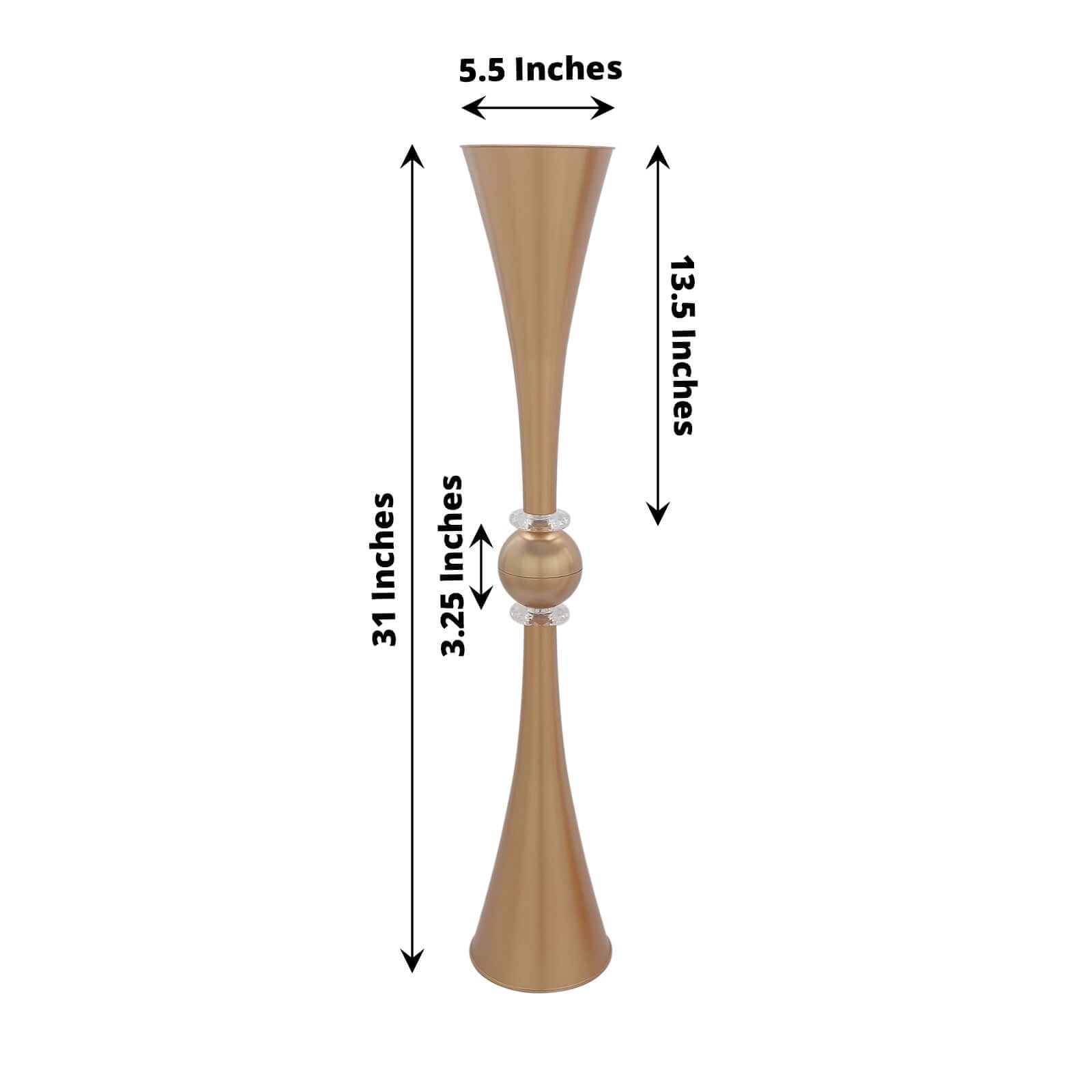 2 Pack 31" Shiny Gold Crystal Embellishment Trumpet Flower Vase, Reversible Plastic Table Centerpiece