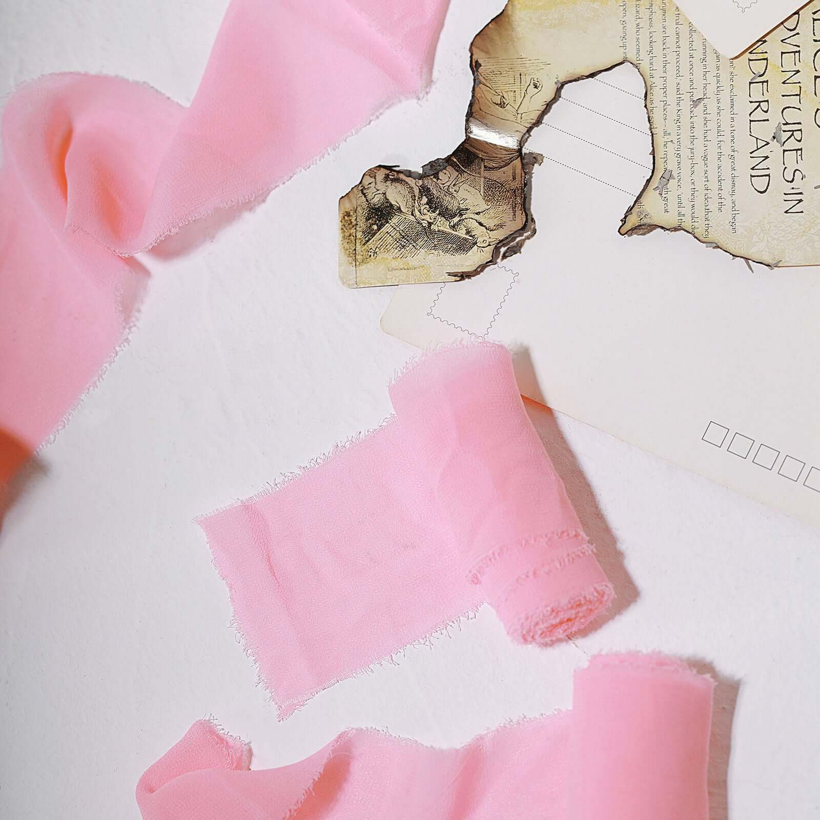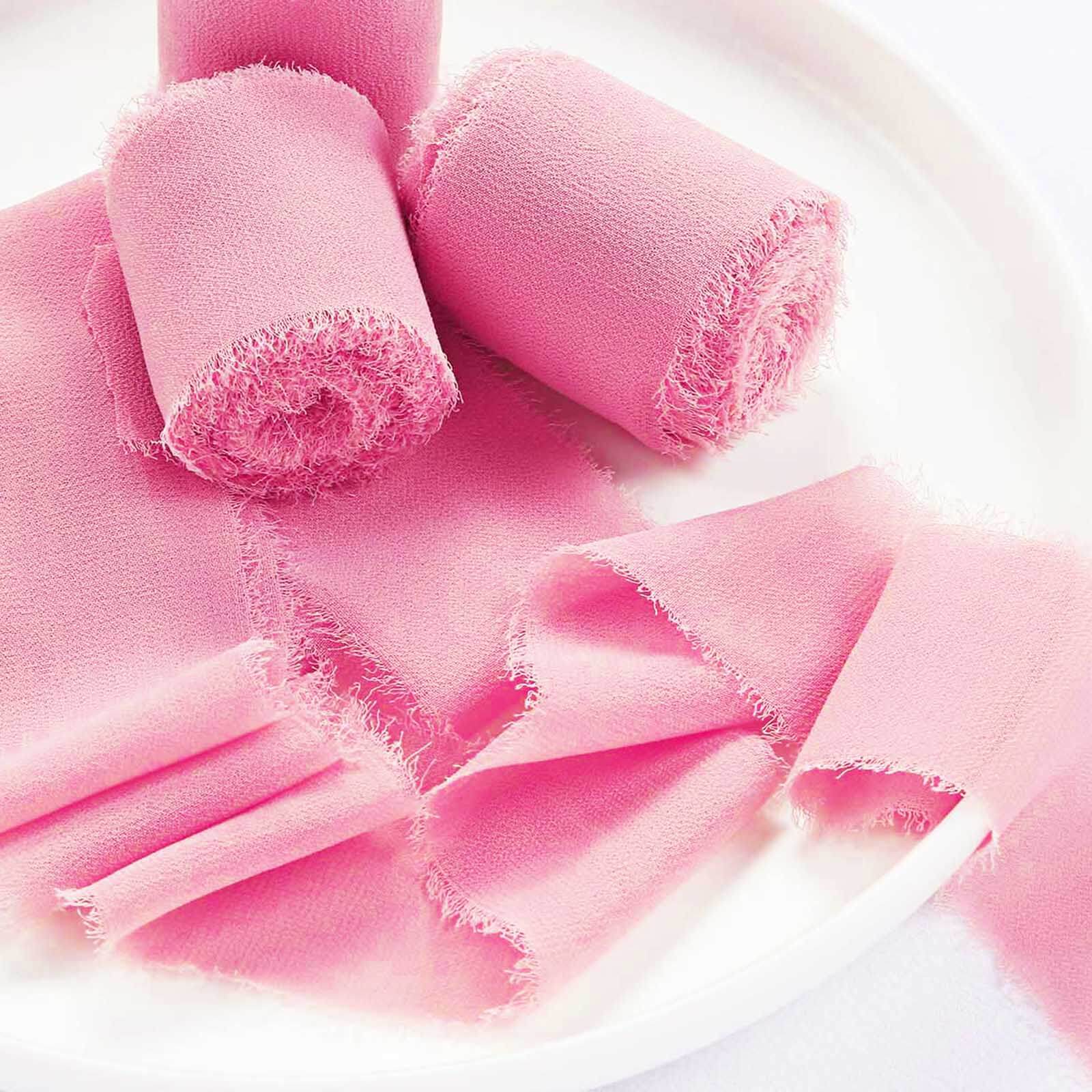 2 Pack 6yd Pink Silk-Like Chiffon Linen Ribbon Roll For Bouquets, Wedding Invitations Gift Wrapping