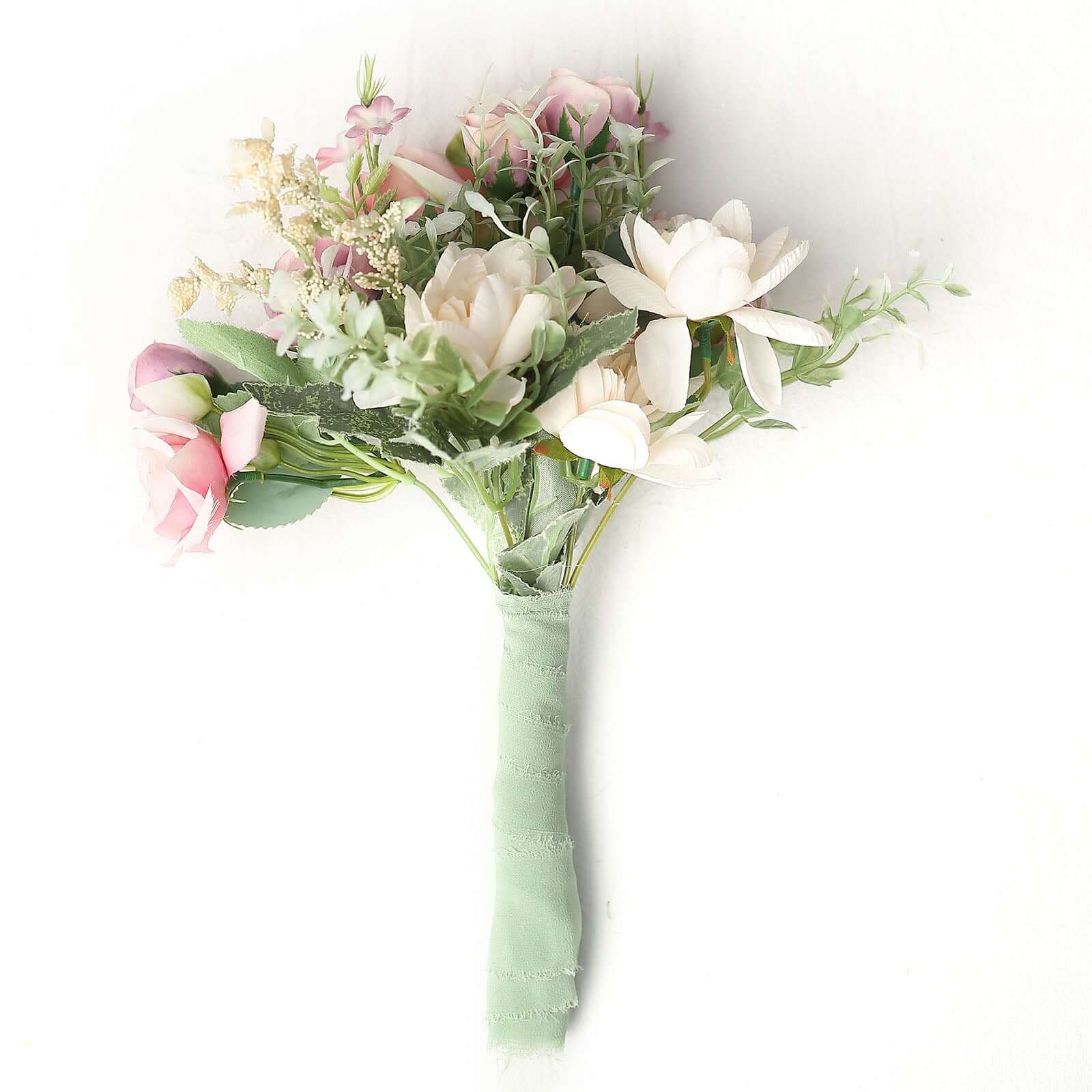 2 Pack 6yds Sage Green Silk-Like Chiffon Ribbon Roll, DIY Wedding Bouquet Linen Wrap