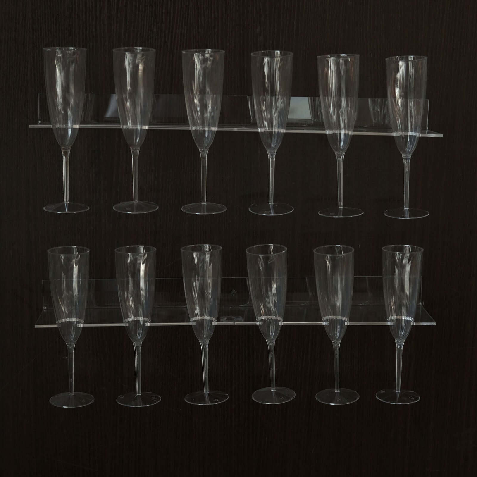 2-Pack Floating Wine Glass Holder Rack Clear Acrylic Holds 12, Wall Mounted Champagne Flute Stemware Hanging Shelves for Events & Home Bar 21"