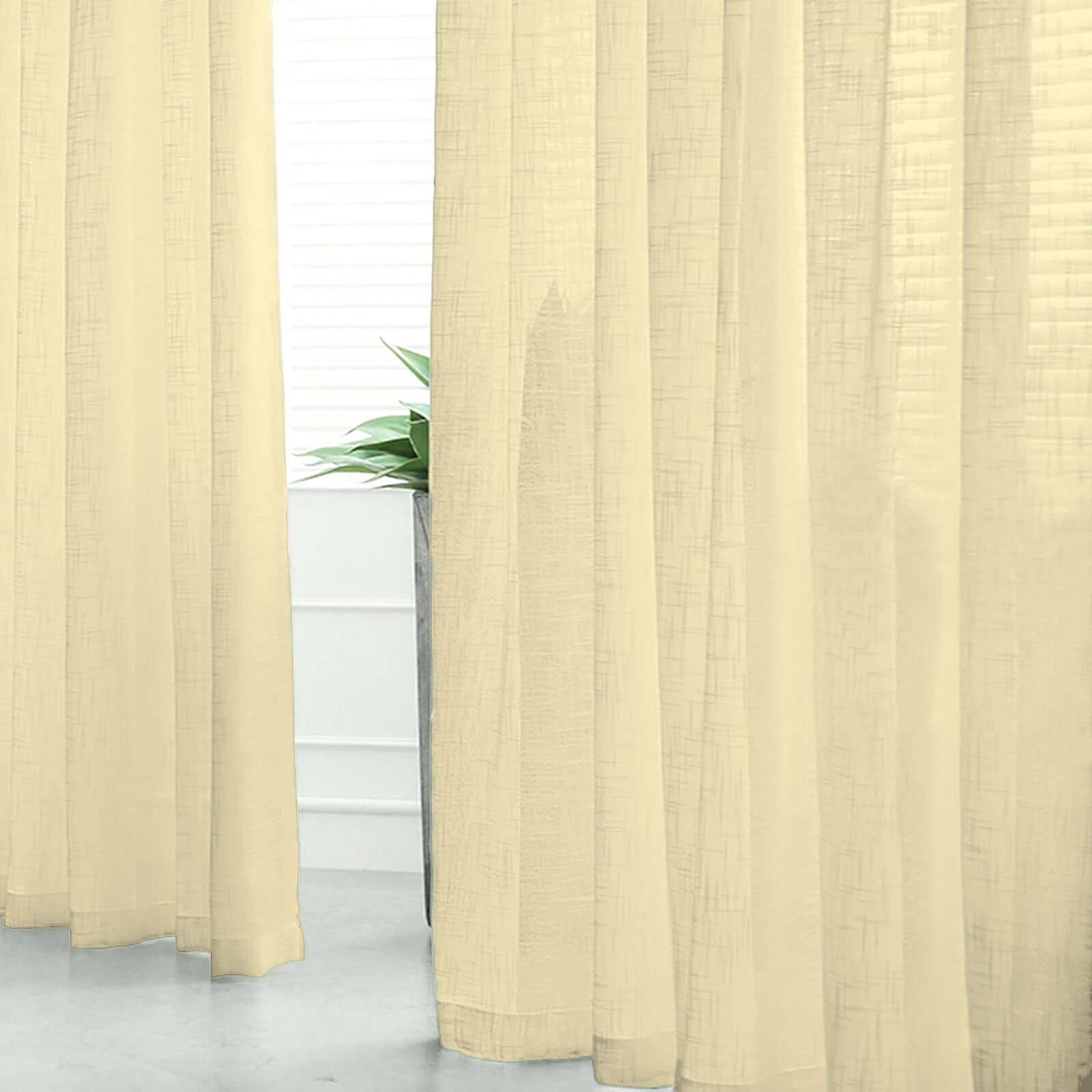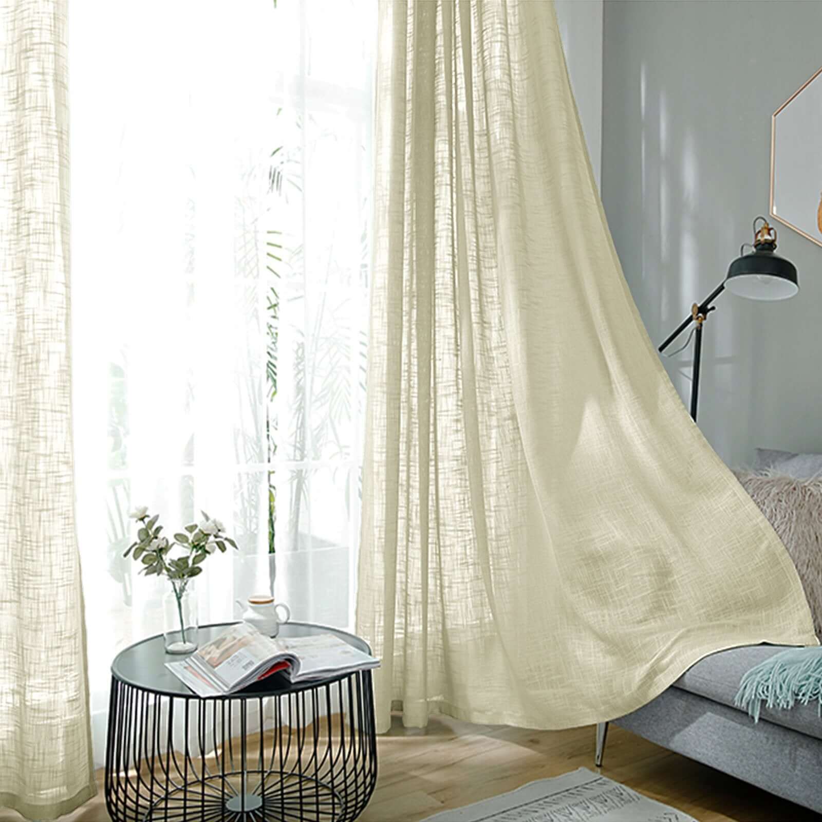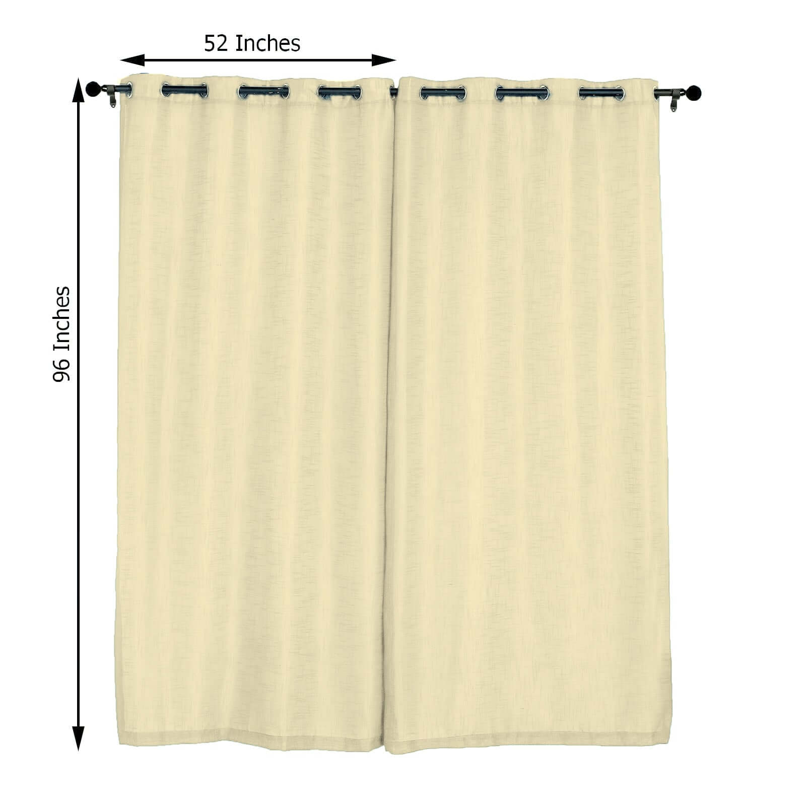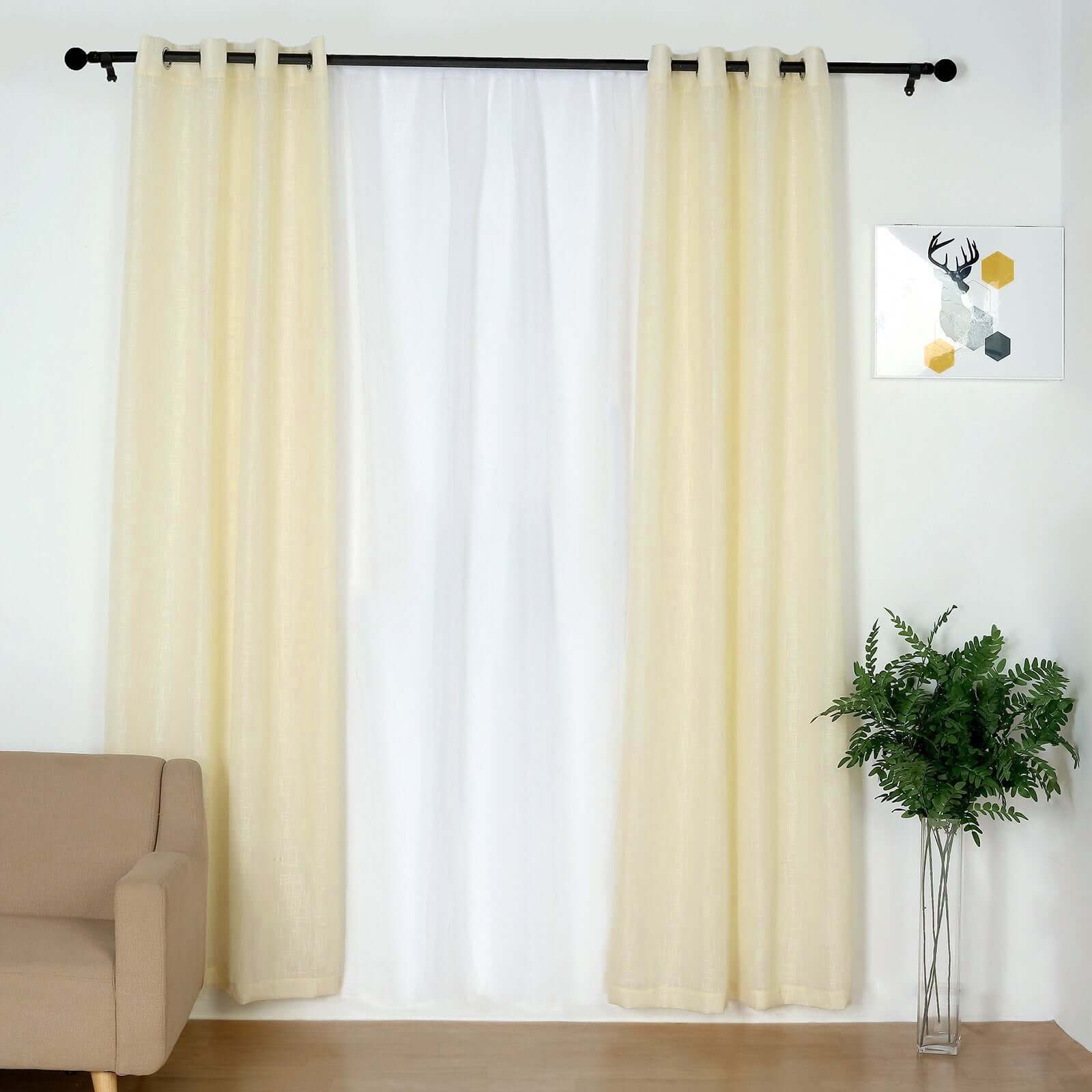 2 Pack Handmade Ivory Faux Linen Curtains 52"x96", Curtain Panels With Chrome Grommets