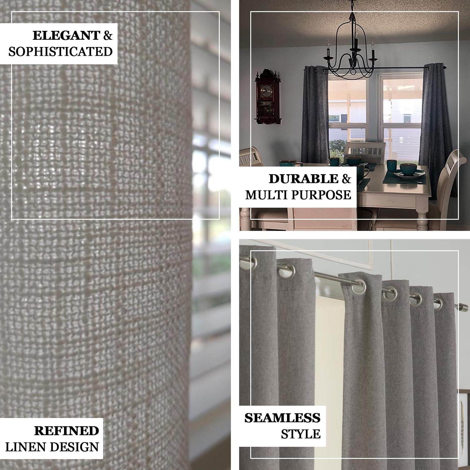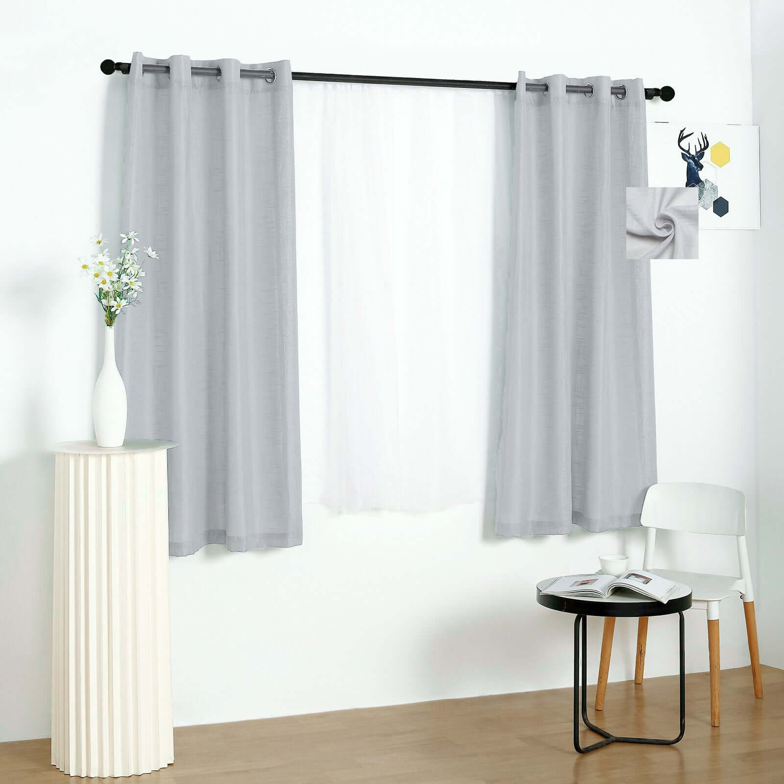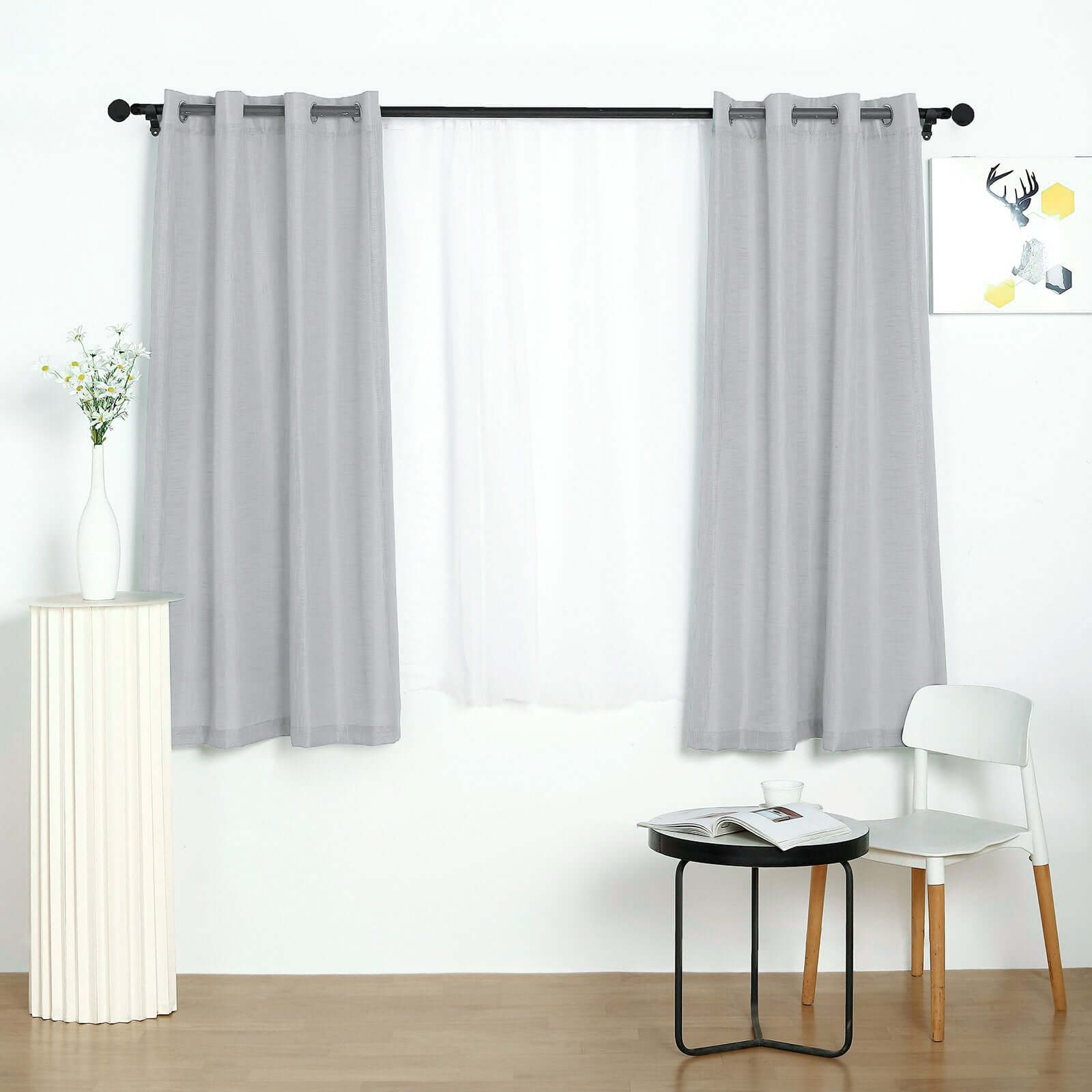 2 Pack Handmade Silver Faux Linen Curtains 52"x64", Curtain Panels With Chrome Grommets