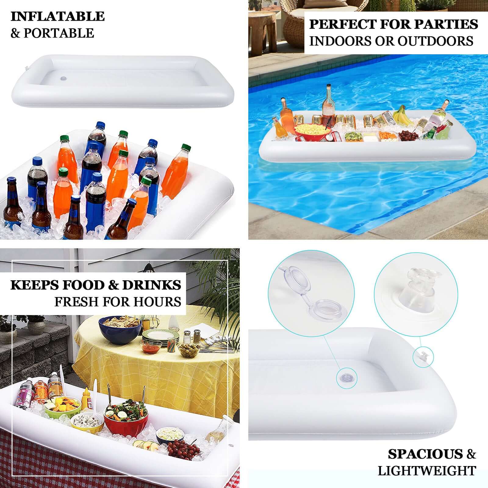 2-Pack Inflatable Ice Coolers with Drain Plug - Buffet Serving Bars for Pool Parties and BBQs 50"x24"