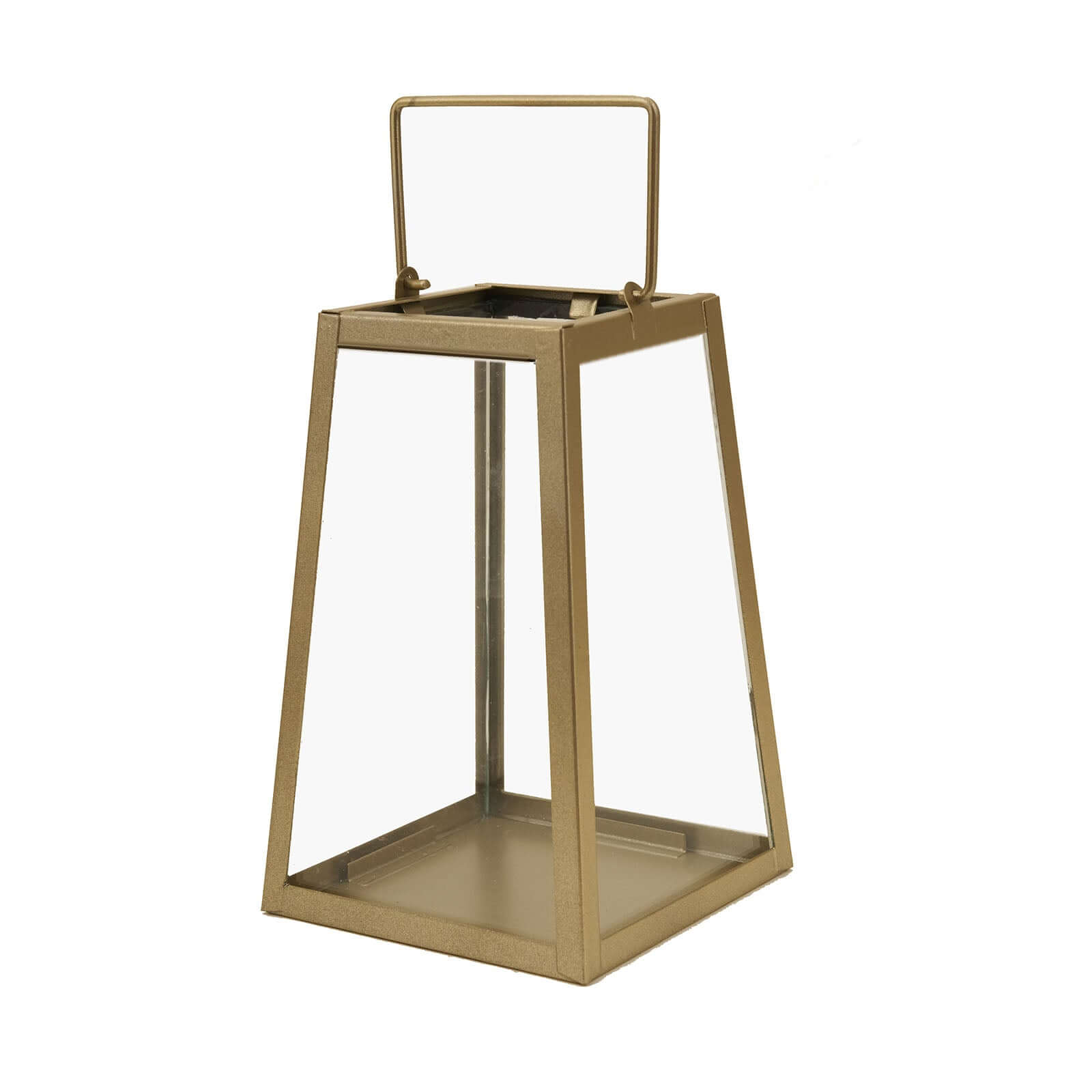 2-Pack Metal Candle Lanterns Trapezoid Geometric Design Gold - Hanging Terrariums Table Centerpieces for Indoor/Outdoor 6"