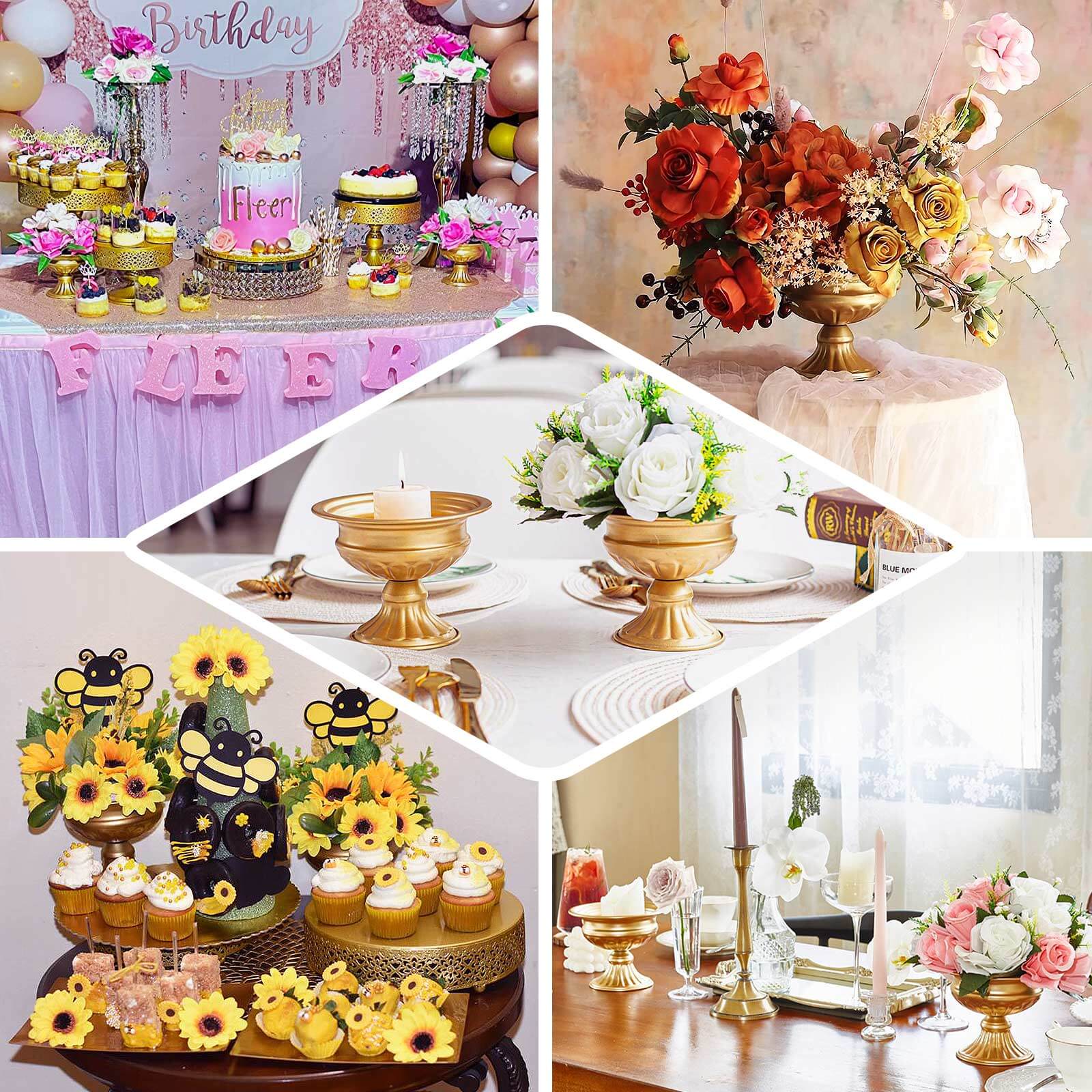 2-Pack Metal Pedestal Flower Vases Wine Goblet Style Gold - Antique Mini Compote Vase for Refined Wedding Centerpieces 4"