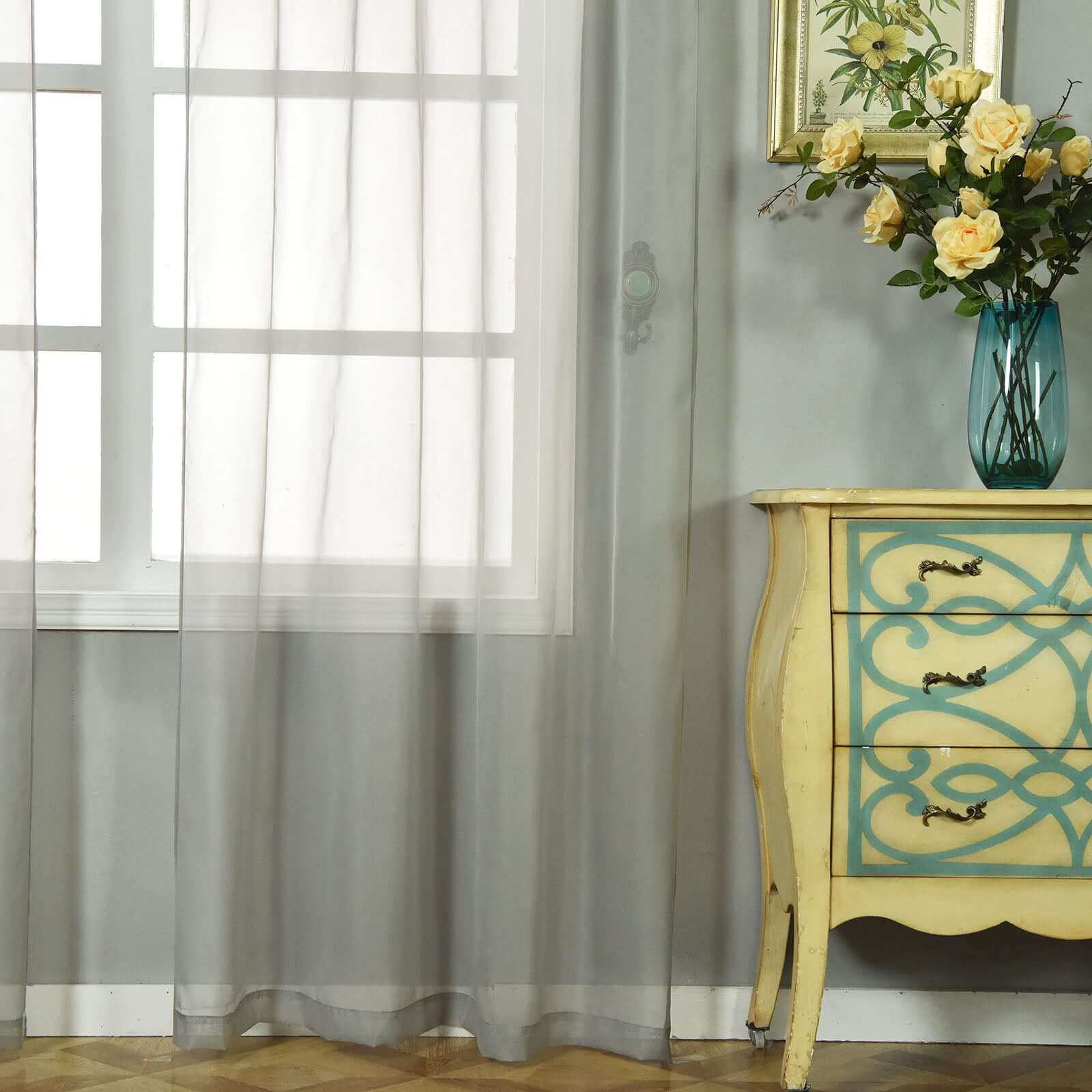 2 Pack Silver Sheer Organza Curtains With Rod Pocket Window Treatment Panels - 52"x108"