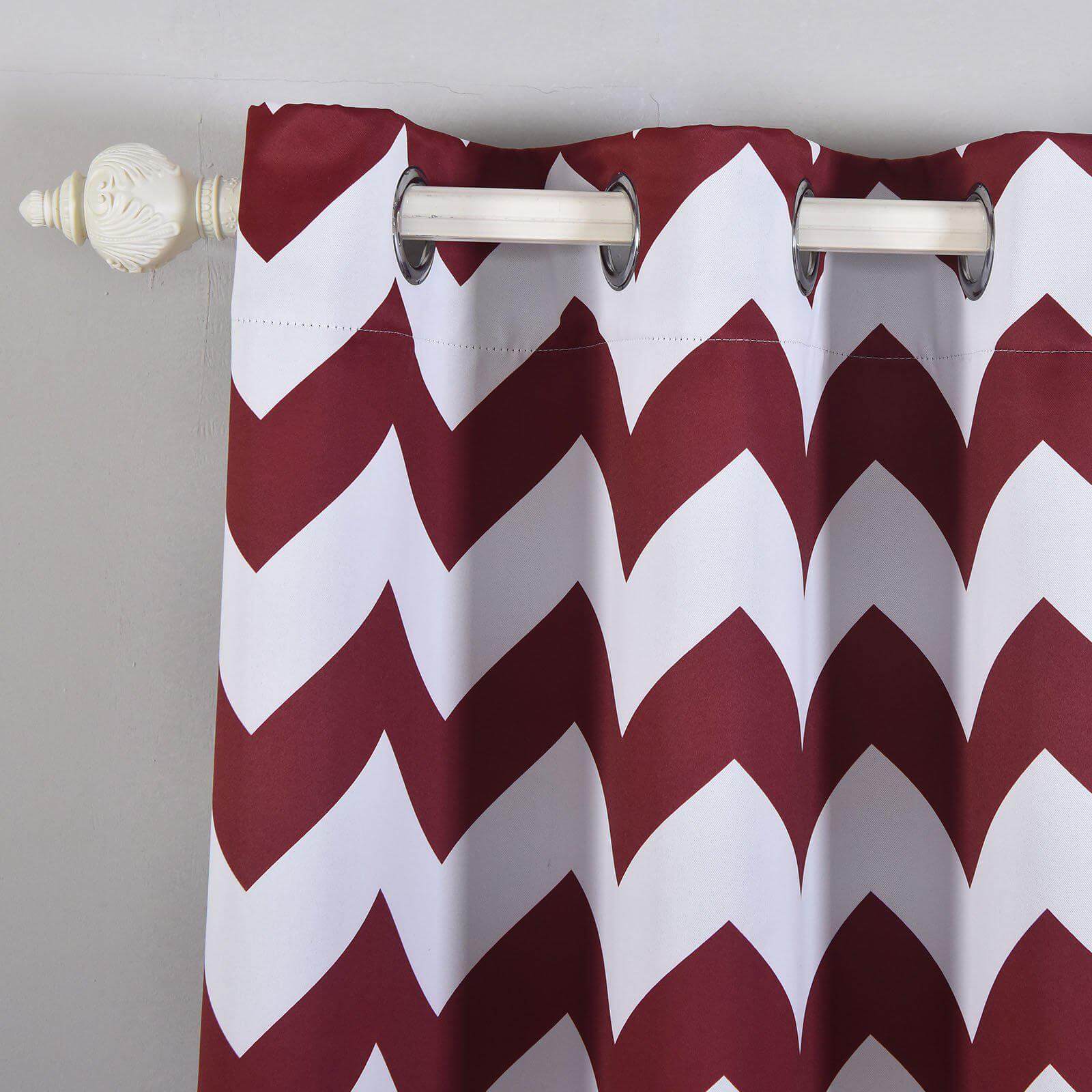 2 Pack White Burgundy Chevron Print Thermal Blackout Window Curtain Grommet Panels, Noise Canceling Curtains - 52"x108"