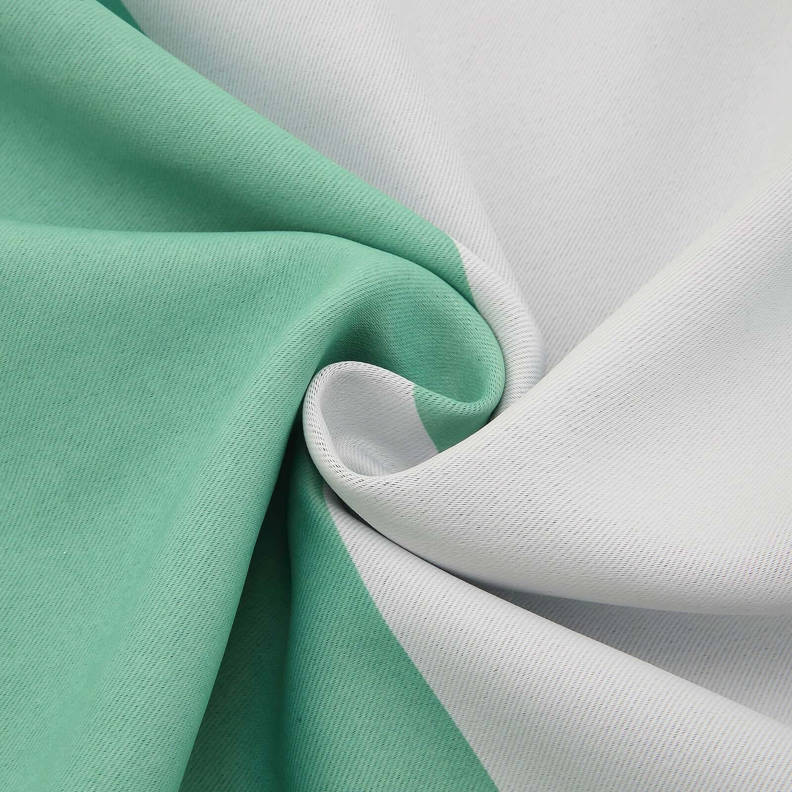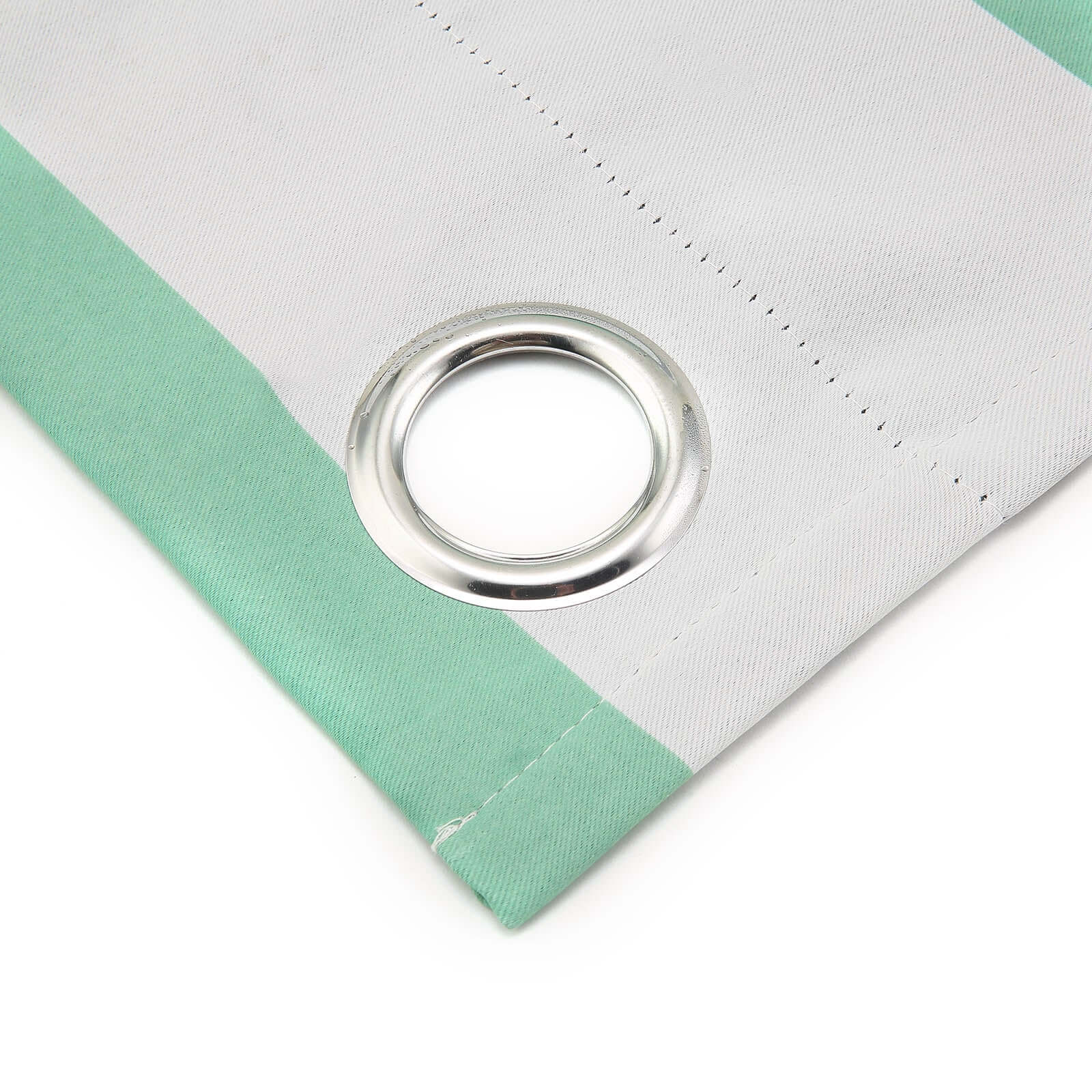 2 Pack White Mint Cabana Stripe Thermal Blackout Window Curtain Grommet Panels, Noise Canceling Curtains - 52"x64"