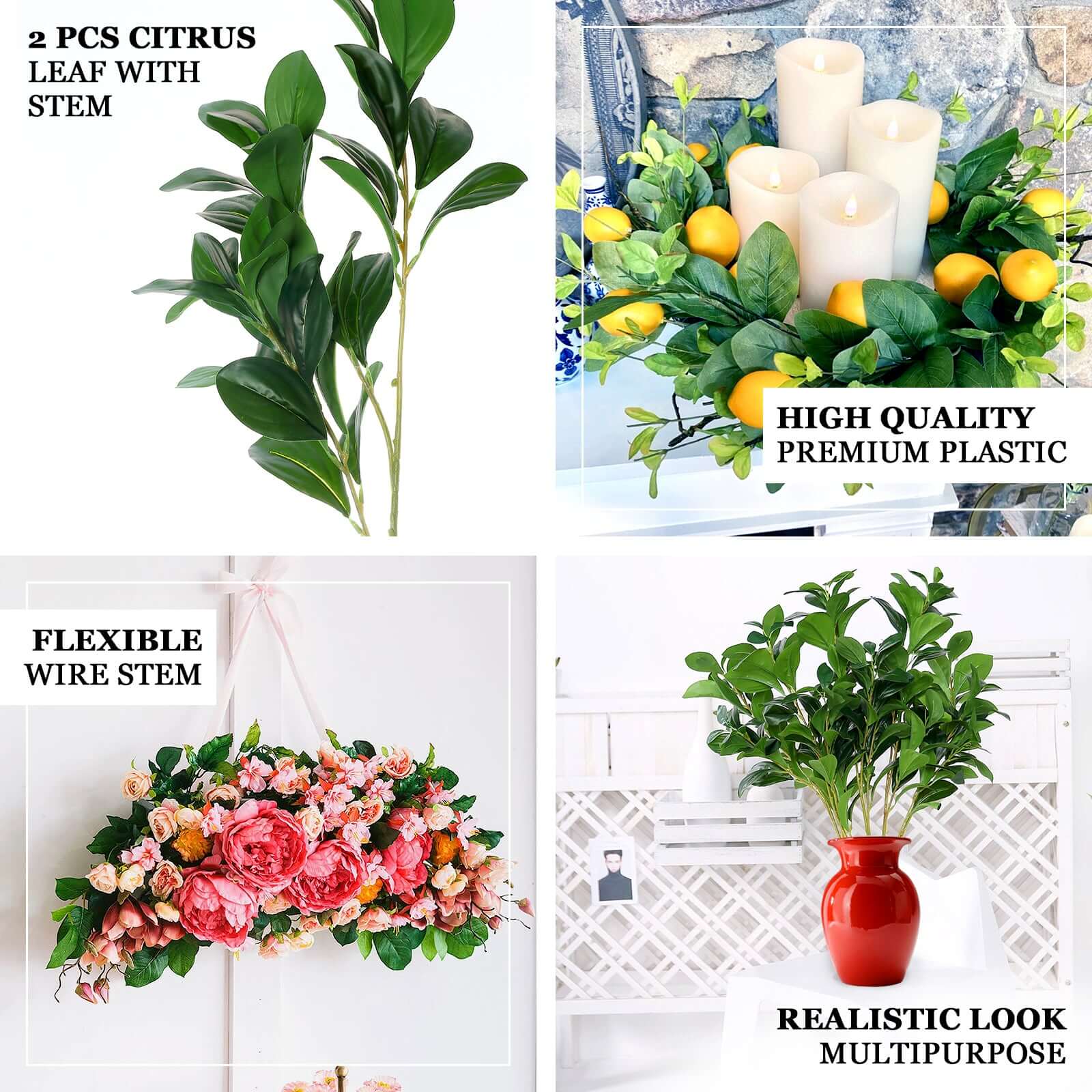2 Stems 26" Green Artificial Lemon Leaf Branches Faux Greenery Plant