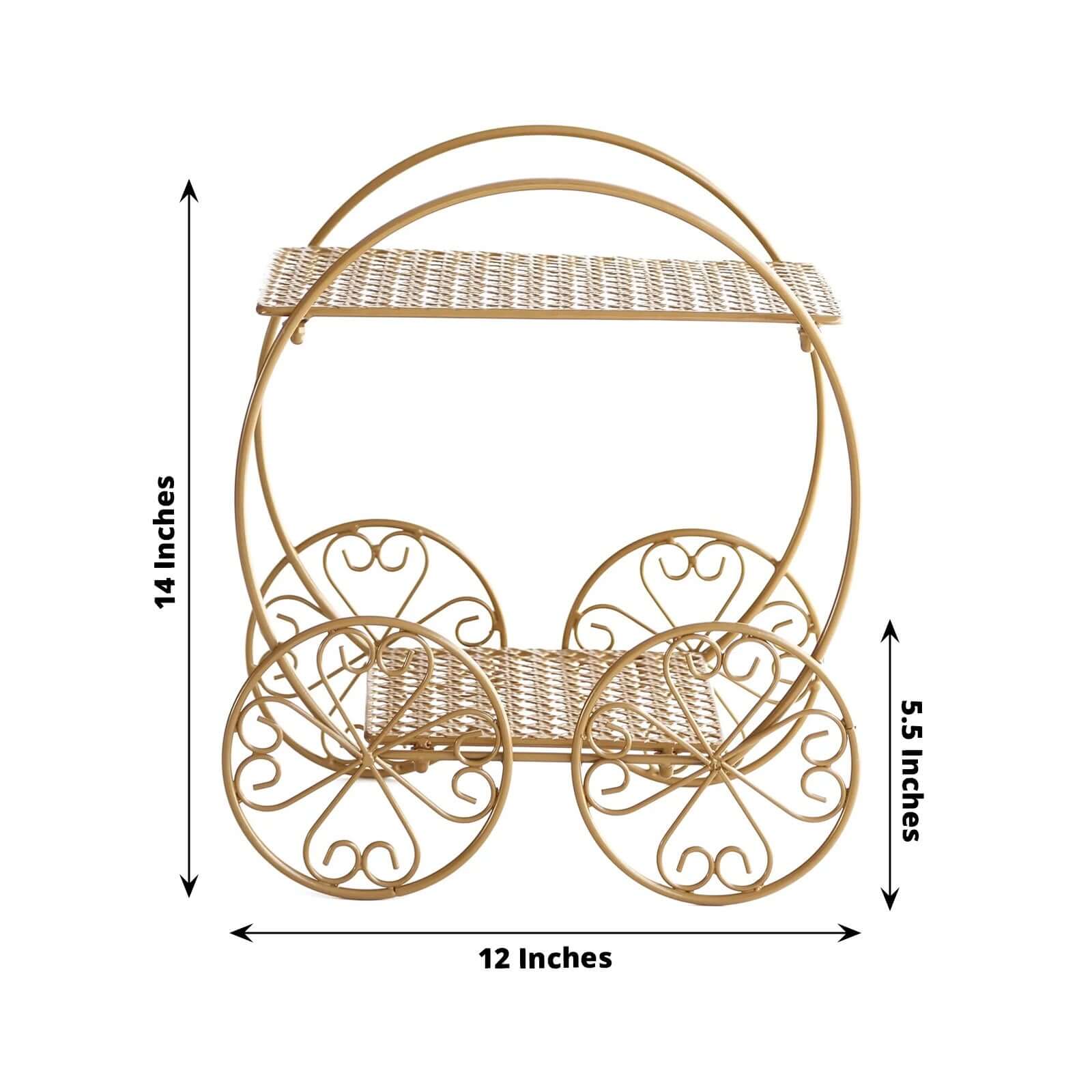 2-Tier Metal Cupcake Dessert Display Stand Gold - Sophisticated Cinderella Carriage Wedding Cake Stand Centerpiece for Fairytale Themes & Princess Parties 14"