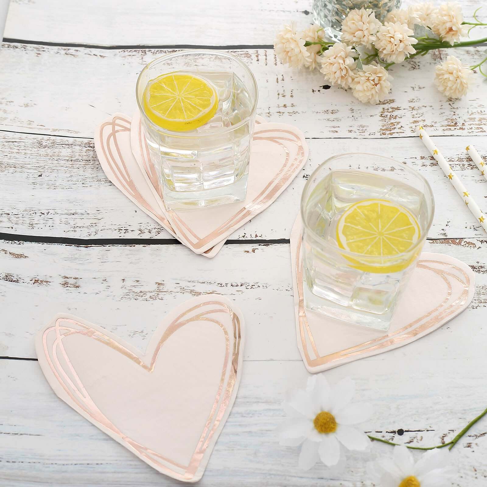 20-Pack Paper Cocktail Napkins with Heart Shape Rose Gold - Stylish Disposable Napkins for Events