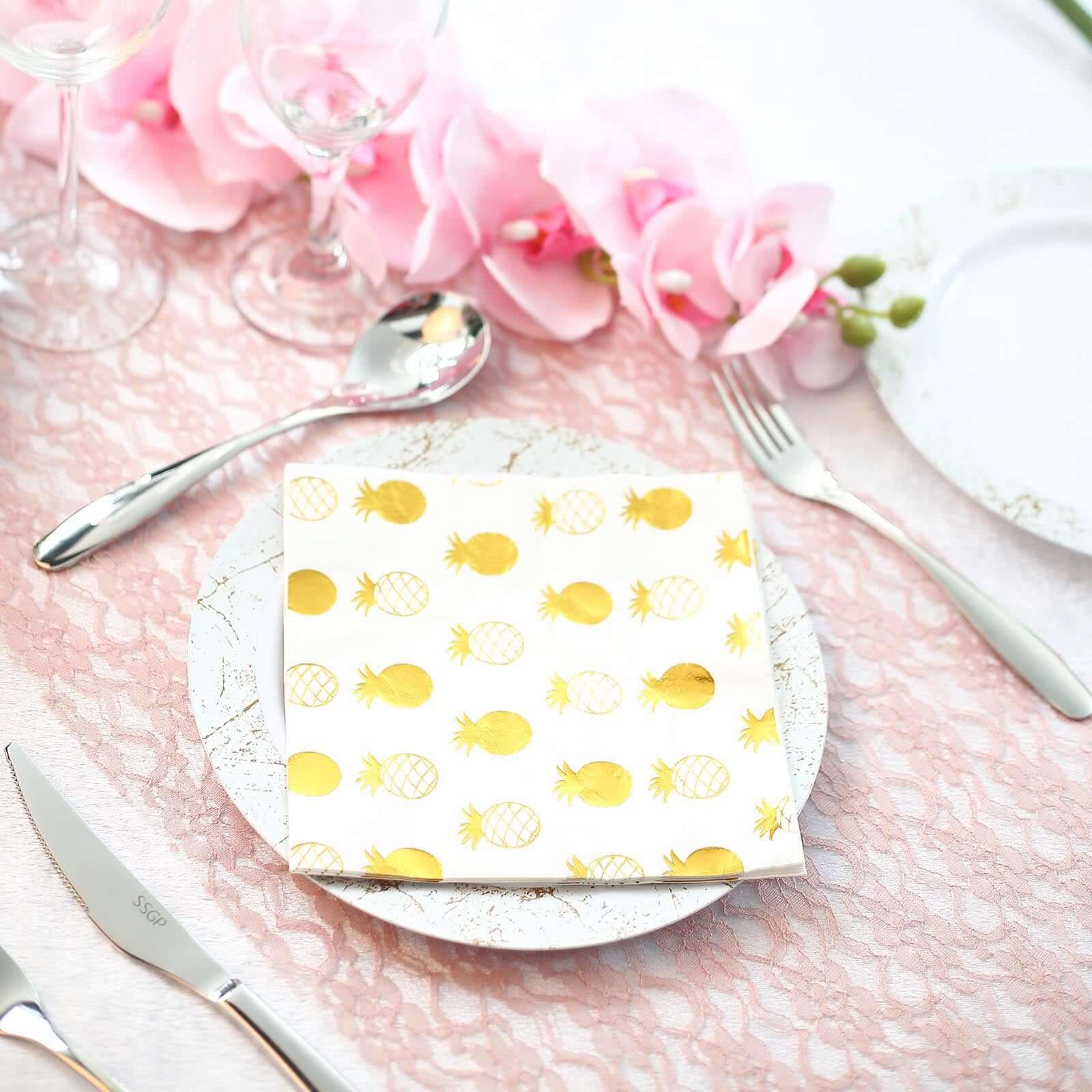 20-Pack Paper Dinner Napkins with Pineapple Design Metallic Gold - Disposable 3 Ply Cocktail Napkins for Parties