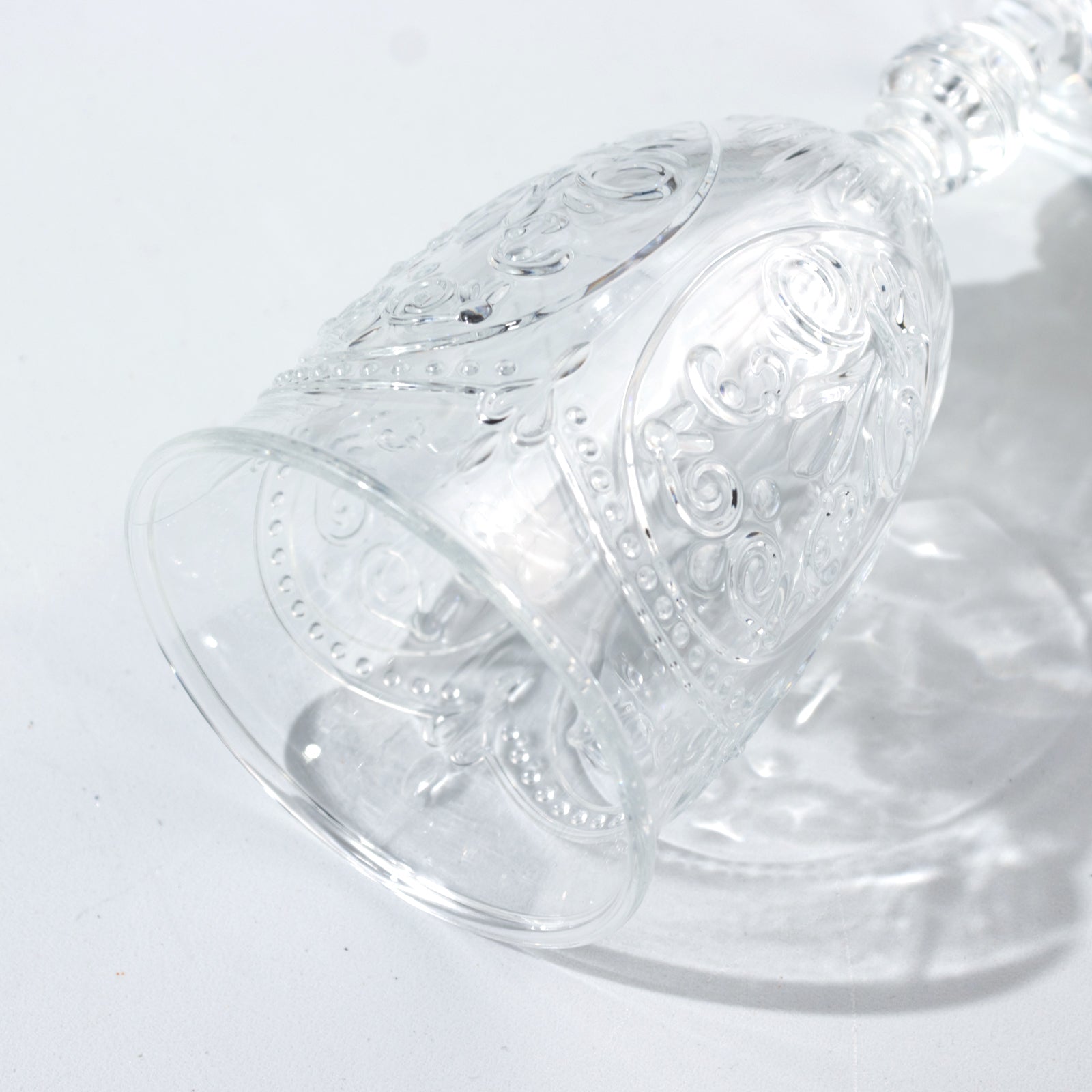 24-Pack Clear Plastic Wine Glasses 10oz – Vintage Goblets with Retro Embossed Design, Elegant Drinkware - 7" Tall